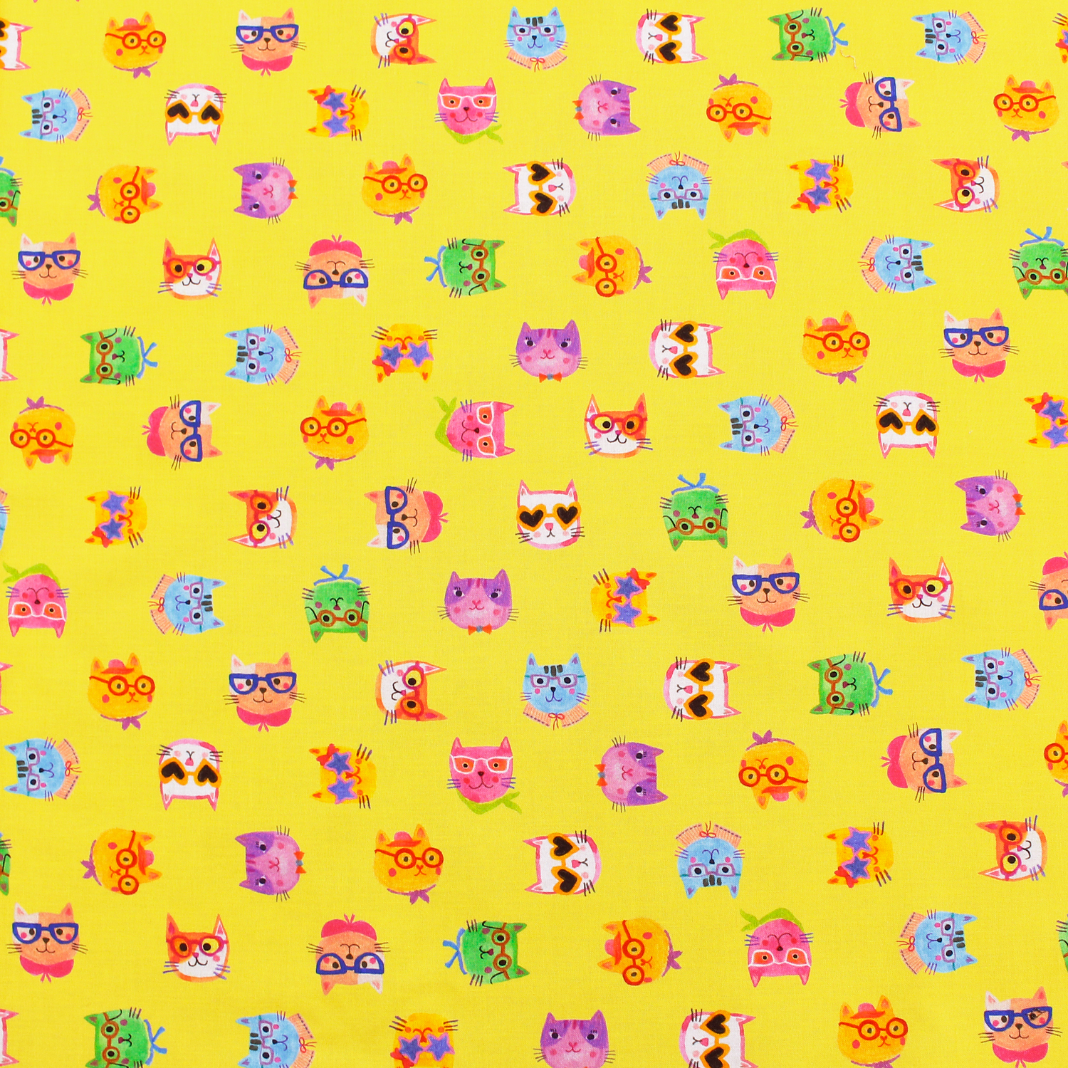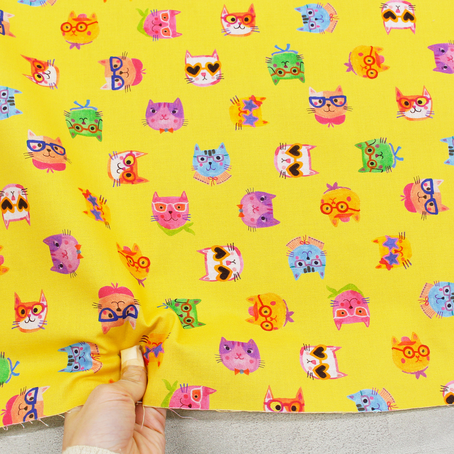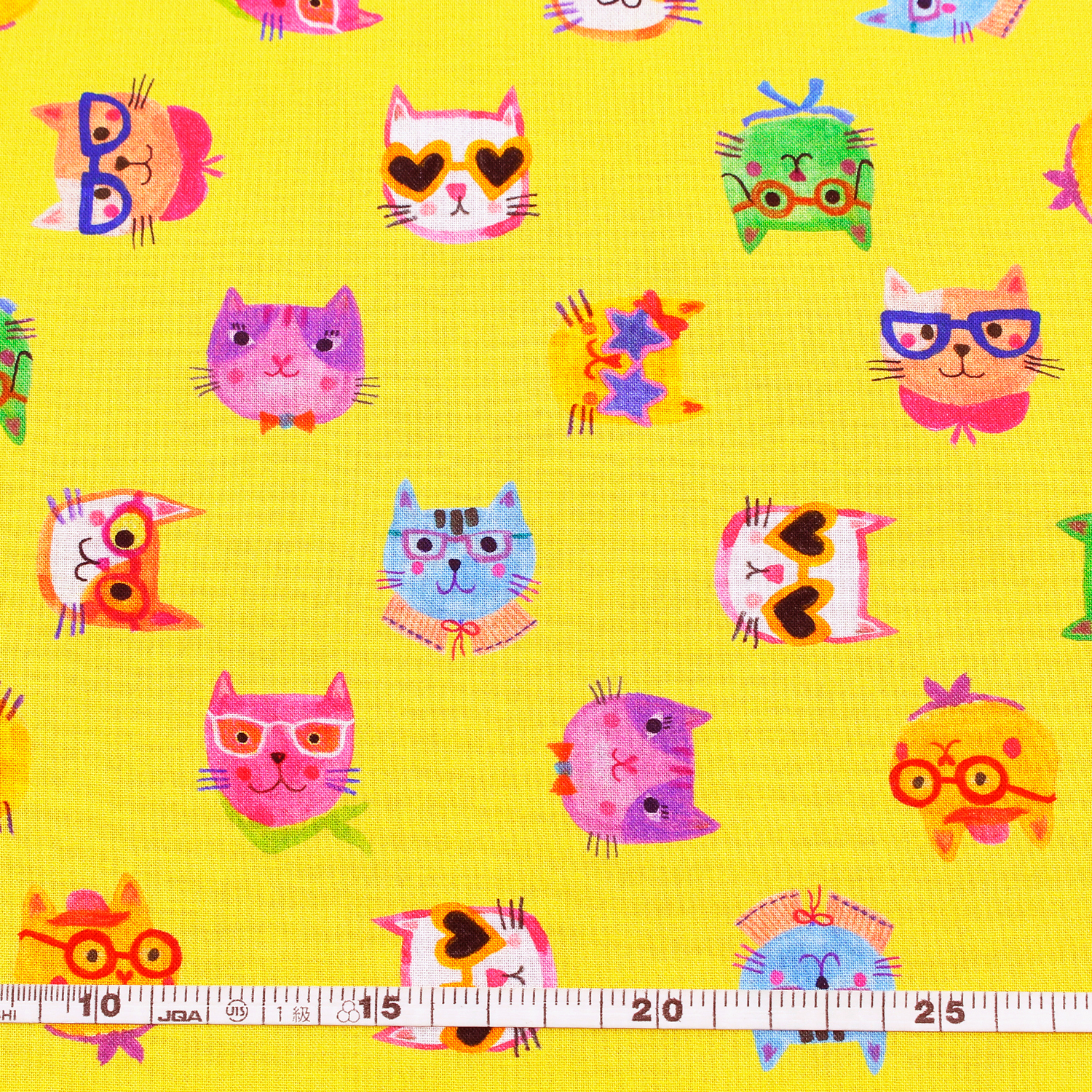 【0116新柄】ROB23285-128 イエロー地 メガネをかけた猫 ROBERT KAUFMAN ロバートカフマン USAプリント 巾約110cm 1m単位 (m)