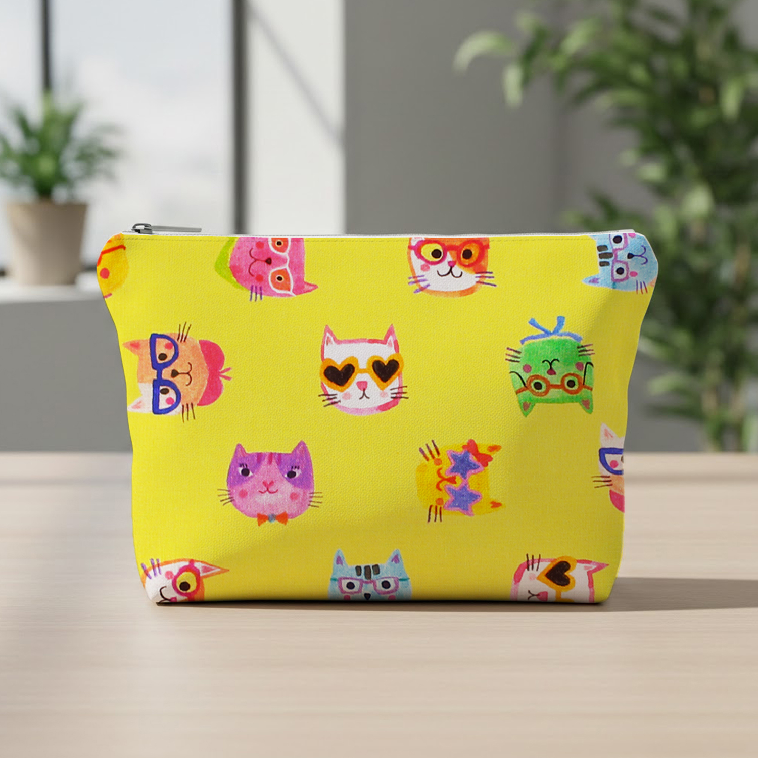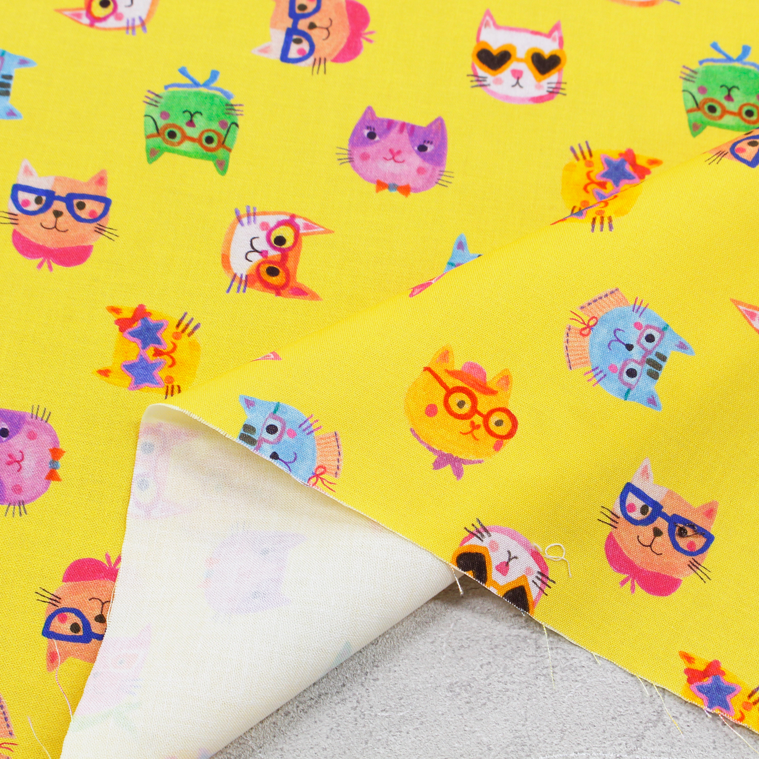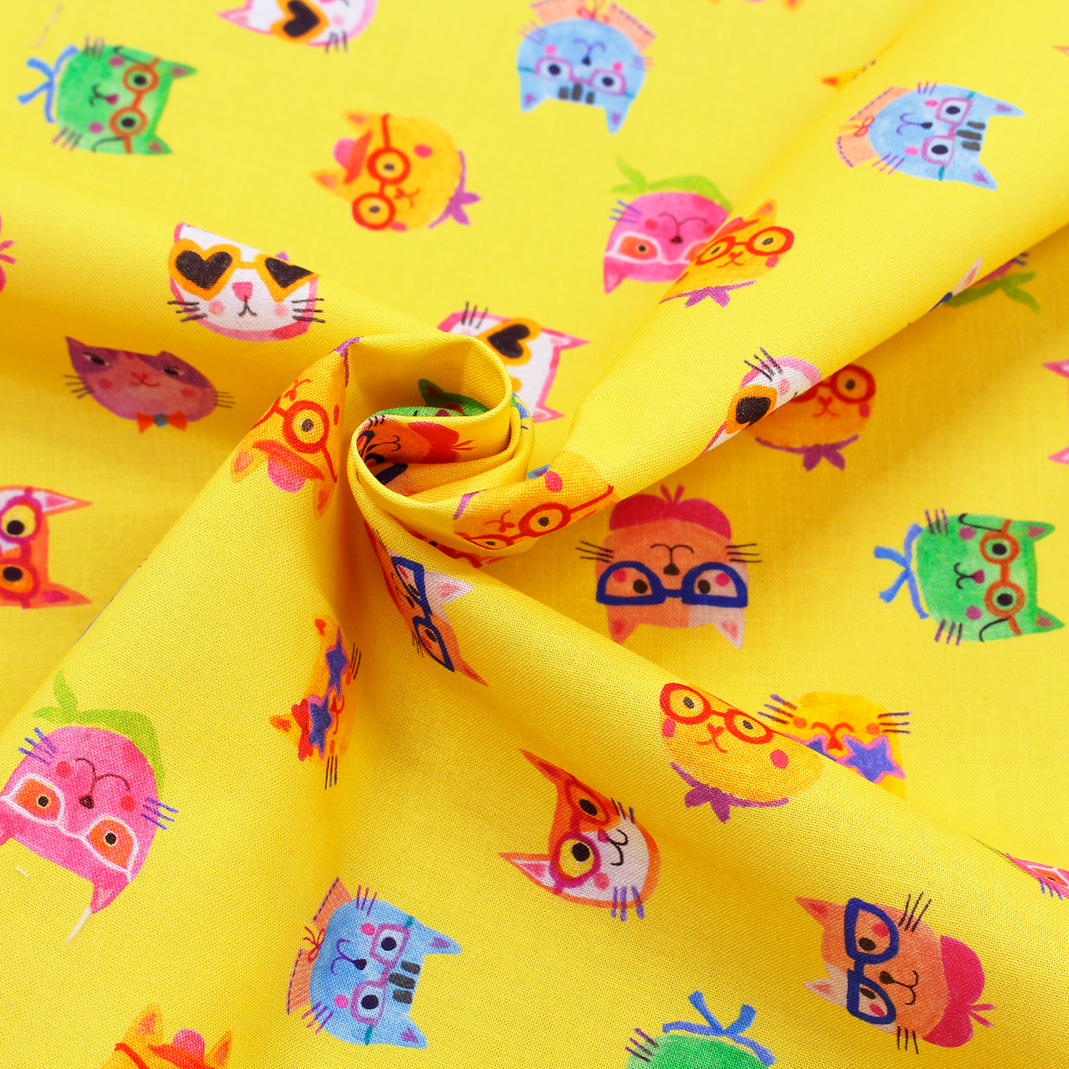 【0116新柄】ROB23285-128 イエロー地 メガネをかけた猫 ROBERT KAUFMAN ロバートカフマン USAプリント 巾約110cm 1m単位 (m)