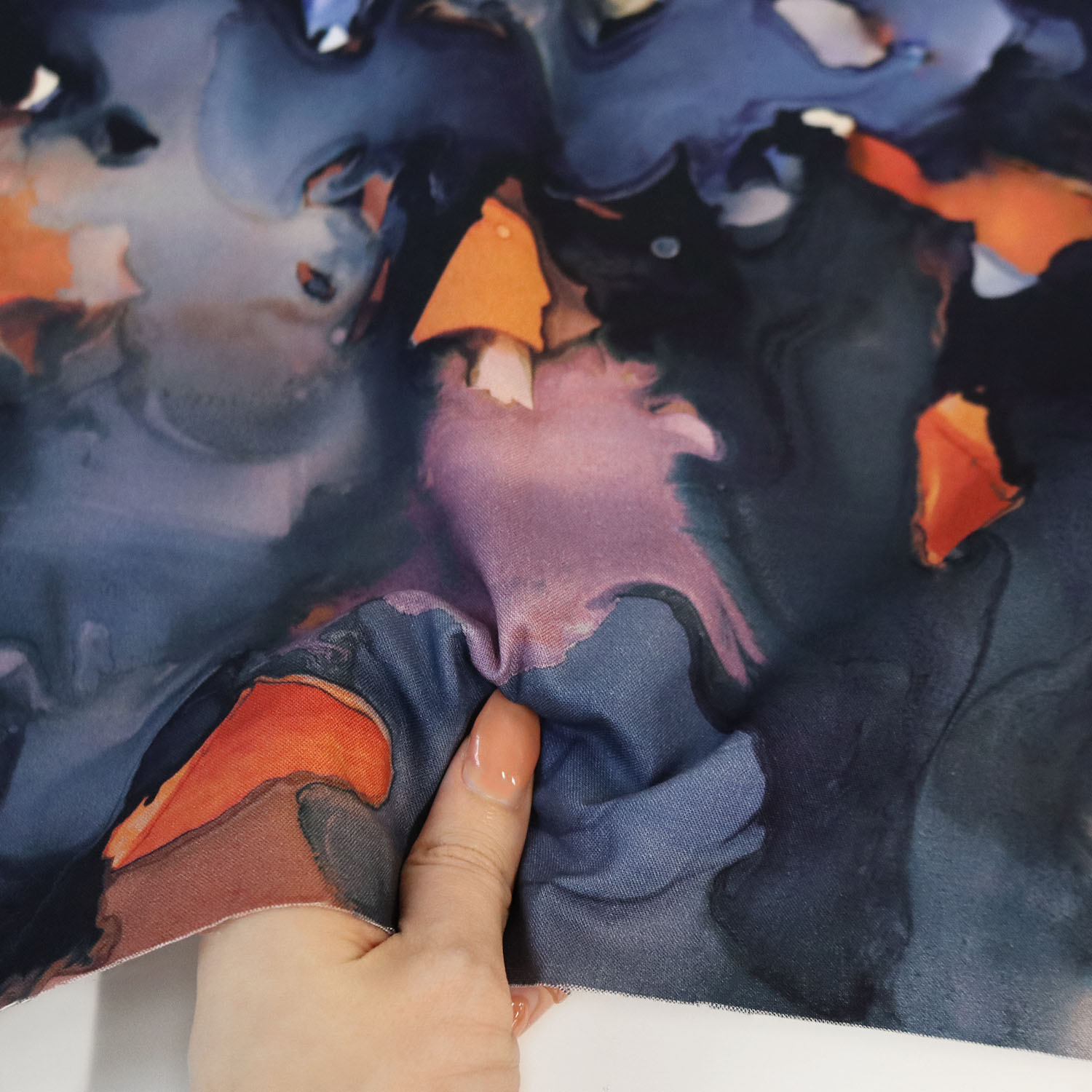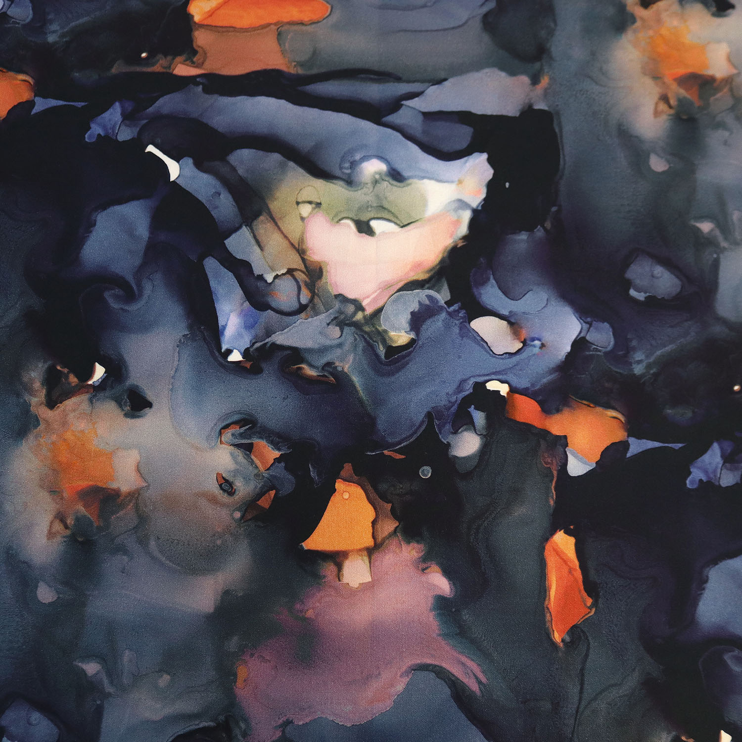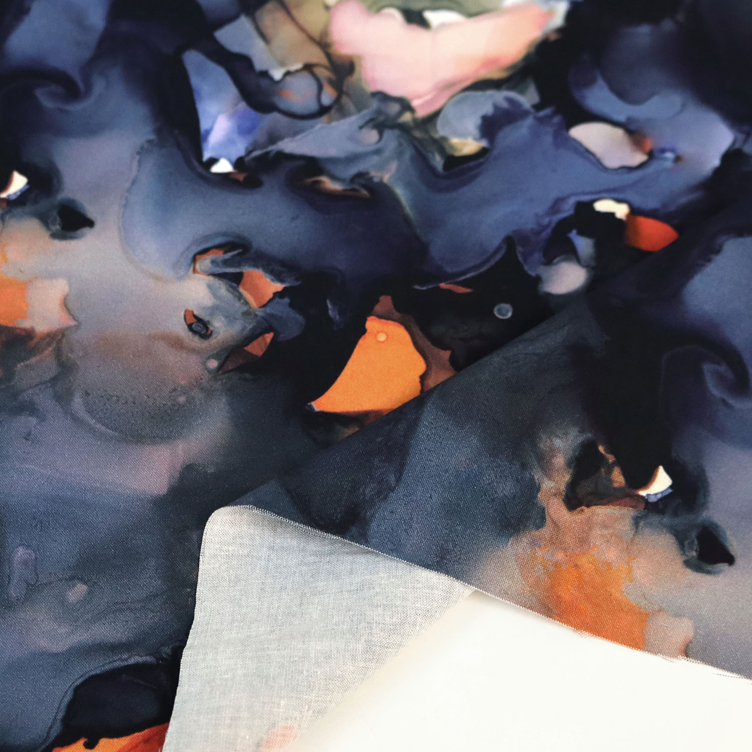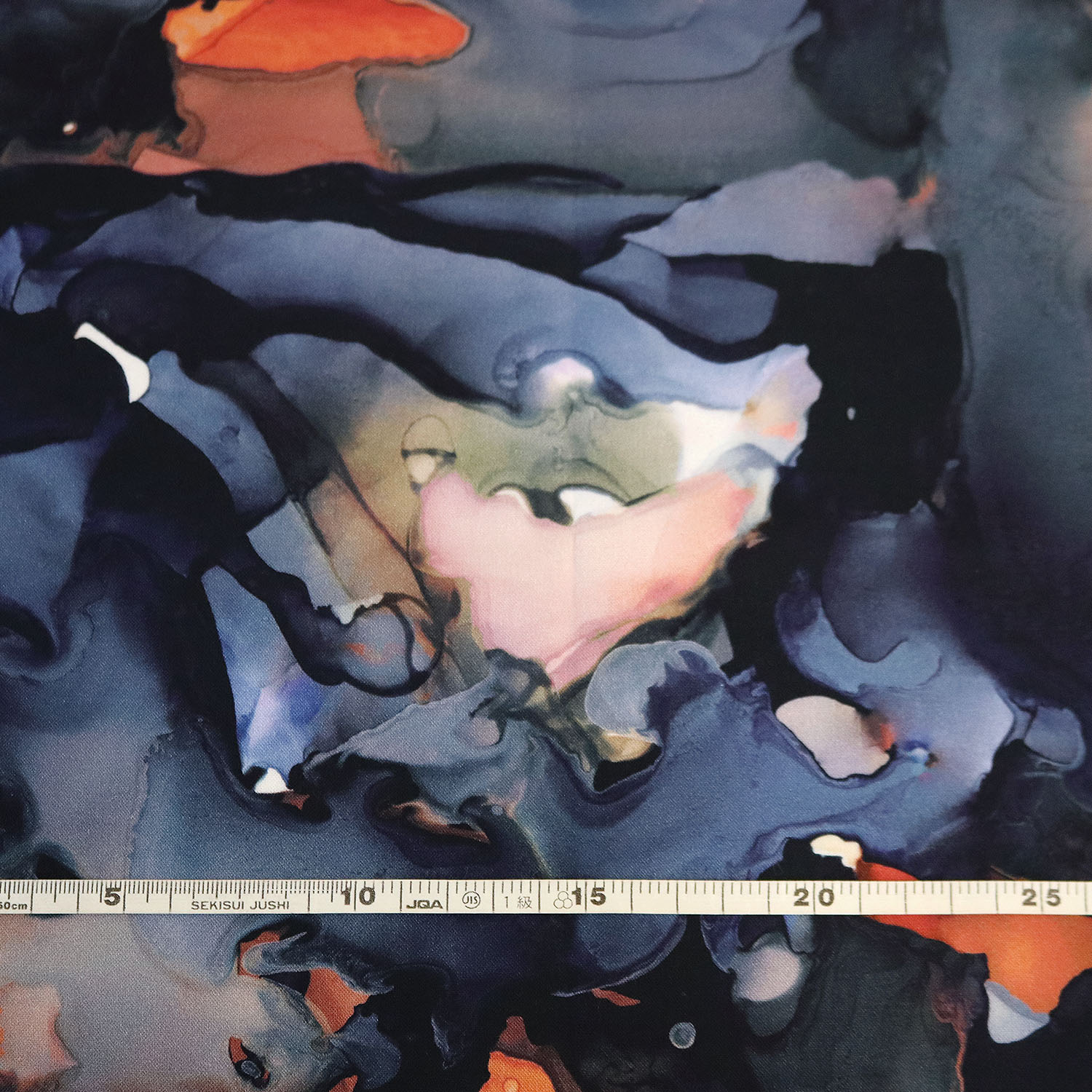 【0119新柄】FSP-905 ネイビー オレンジ 水彩 マーブル FreeSpirit フリースピリット USAプリント m単位 (m)