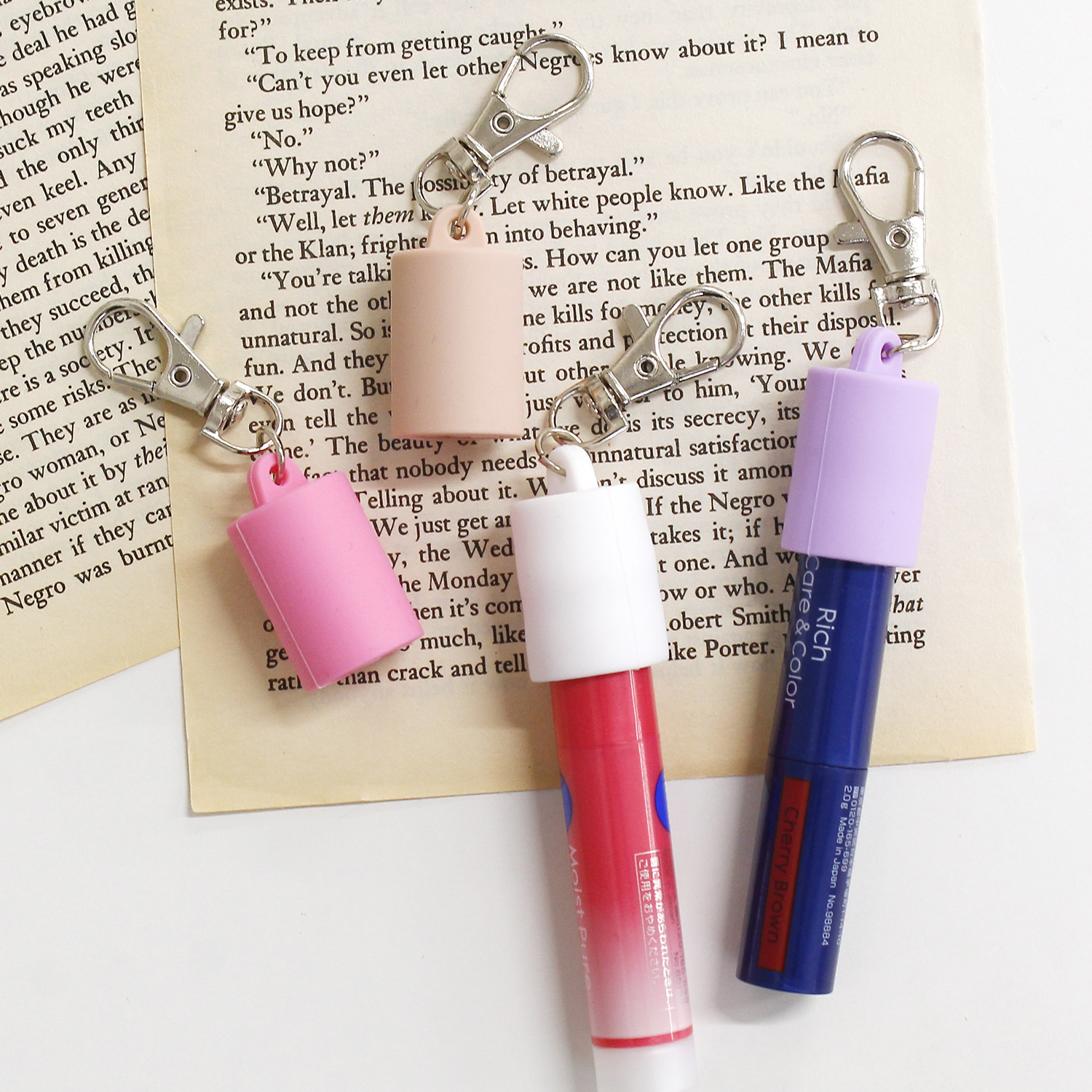 お手持ちのリップを差し込むだけで、キーホルダーやバッグチャームとしてアレンジ可能。
