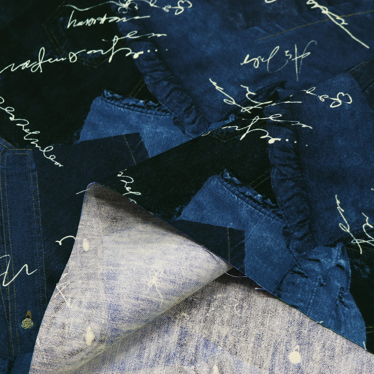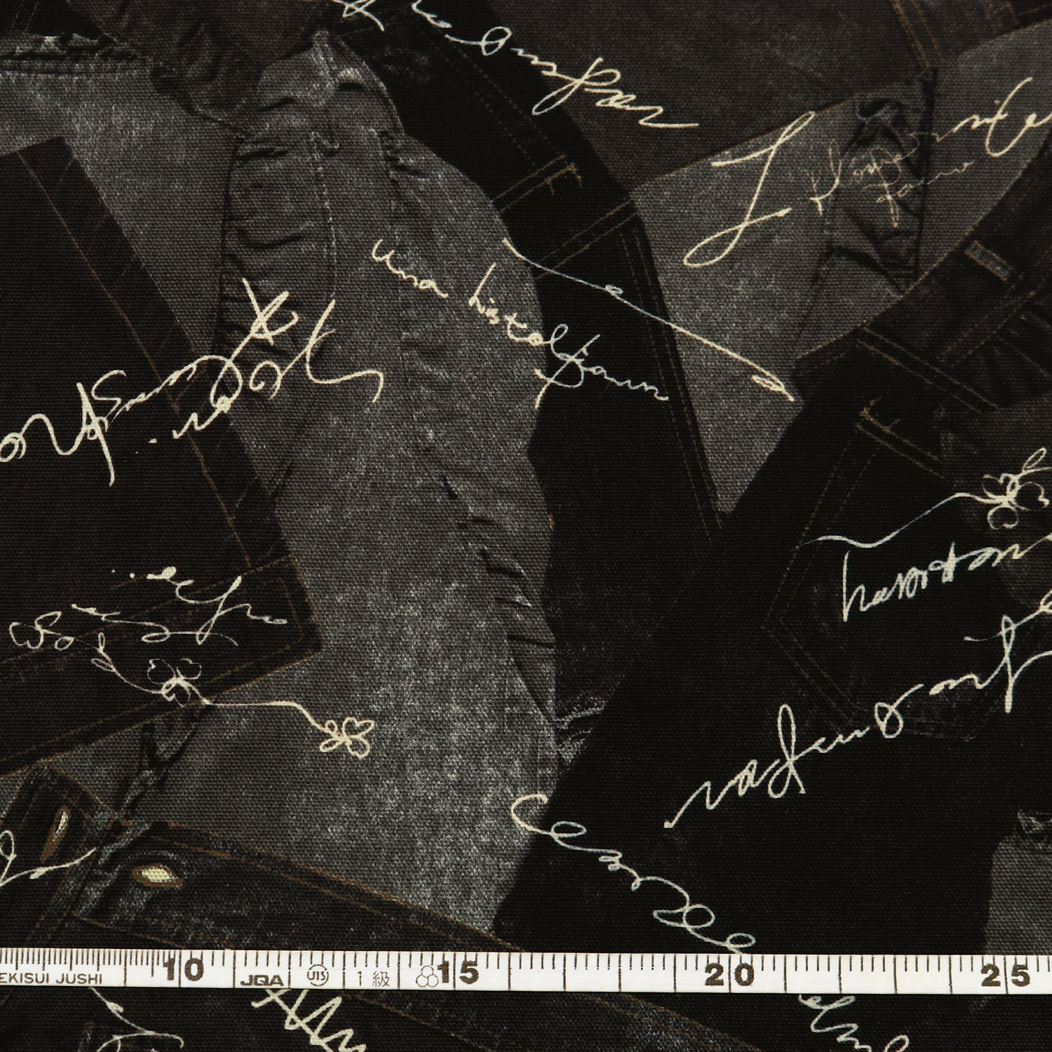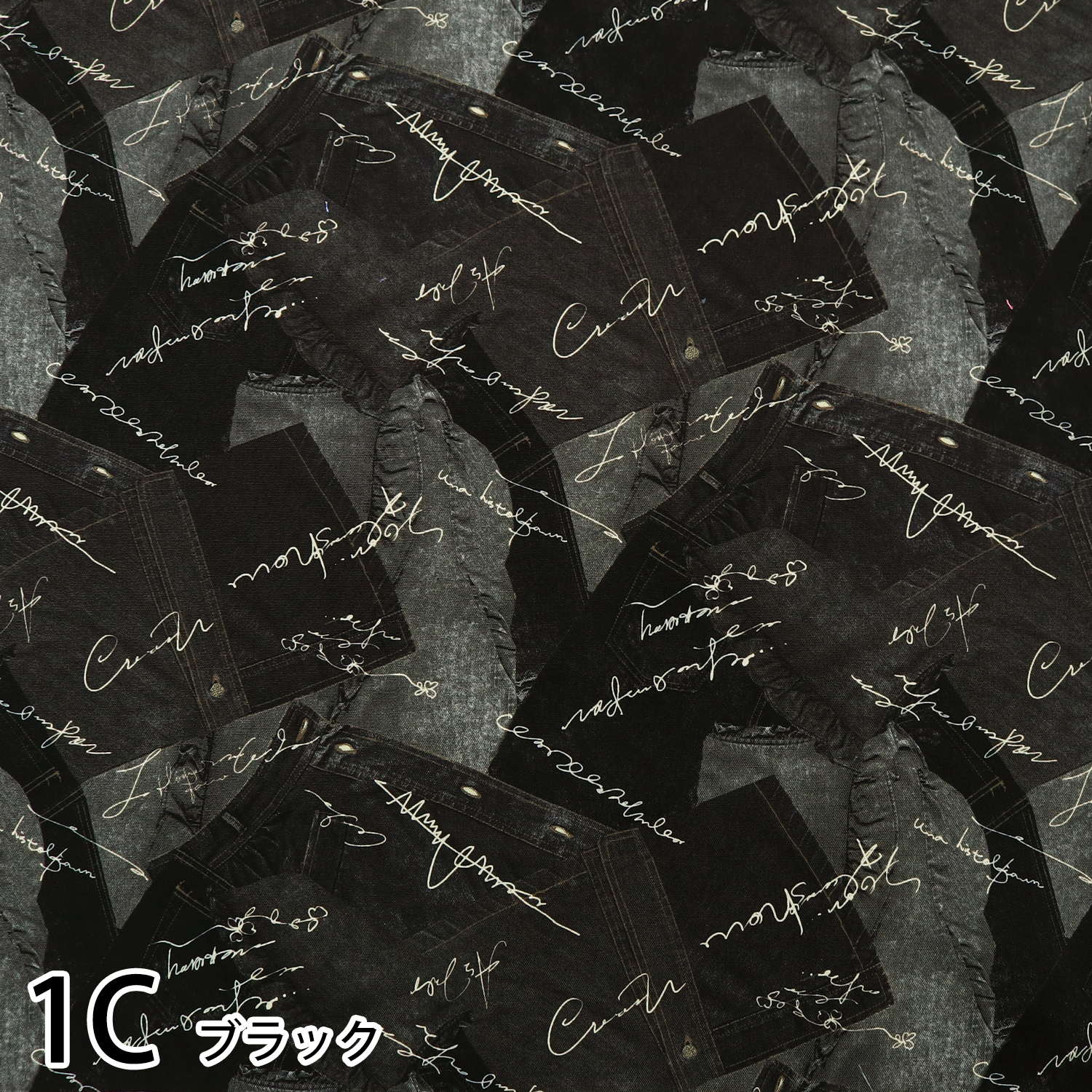 リアルなデニムがコラージュ風にプリントされた生地で、バッグやポーチなどの作品作りにおすすめです