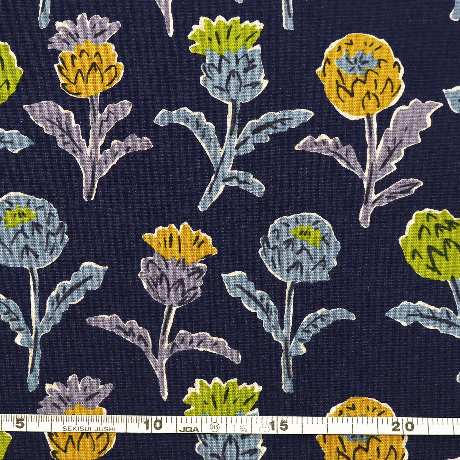使いやすい花柄モチーフの綿麻キャンバス生地です。