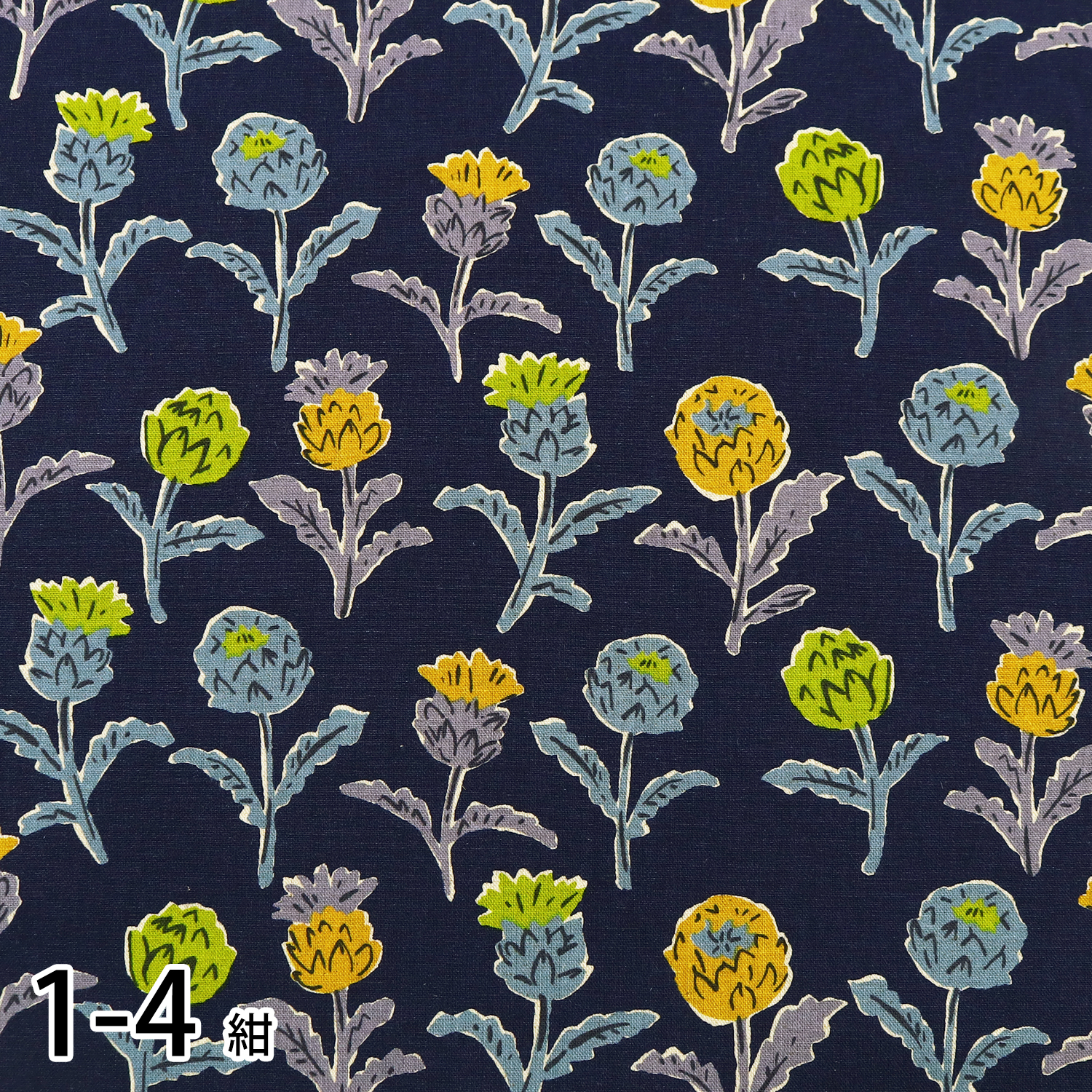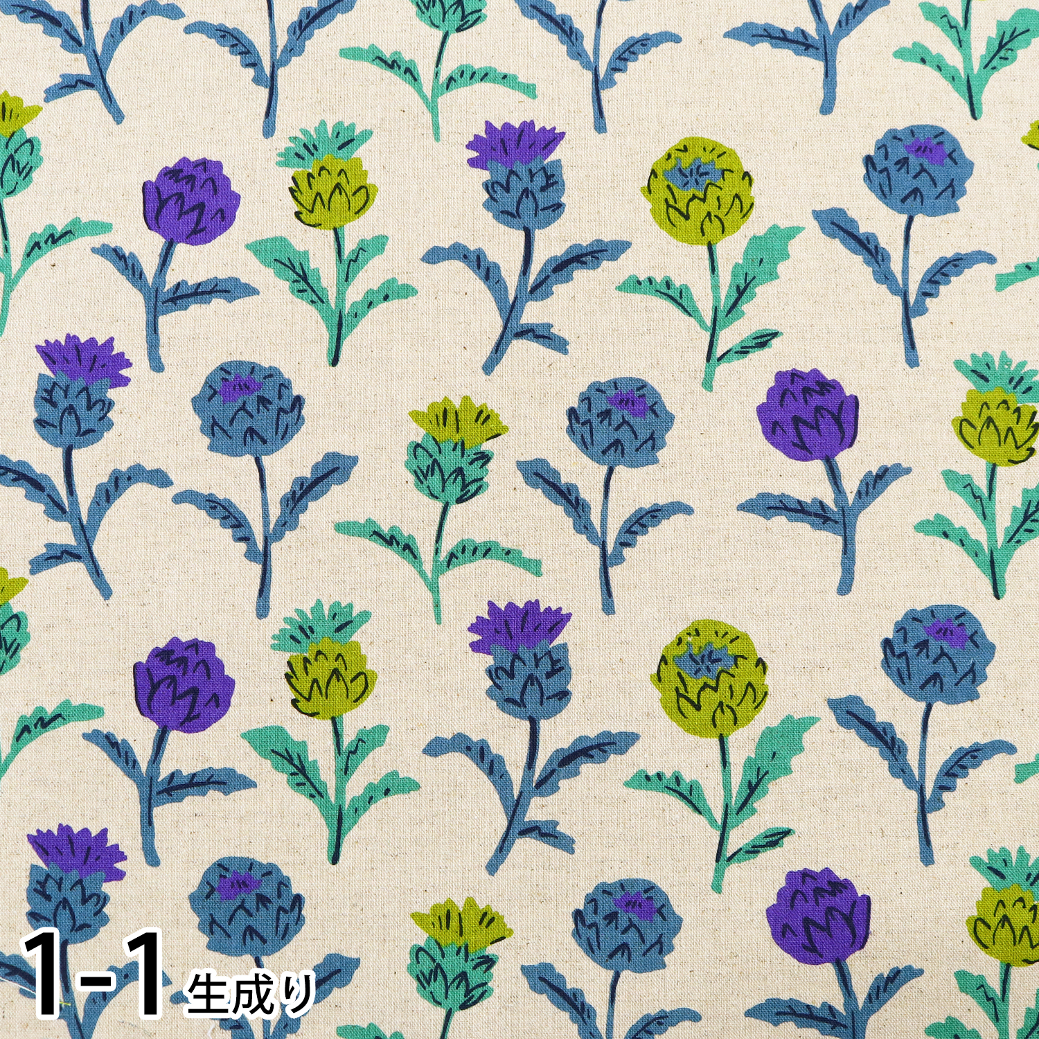 B850596 綿麻キャンバスプリント アーティチョーク 巾約112cm 1m単位 (m)