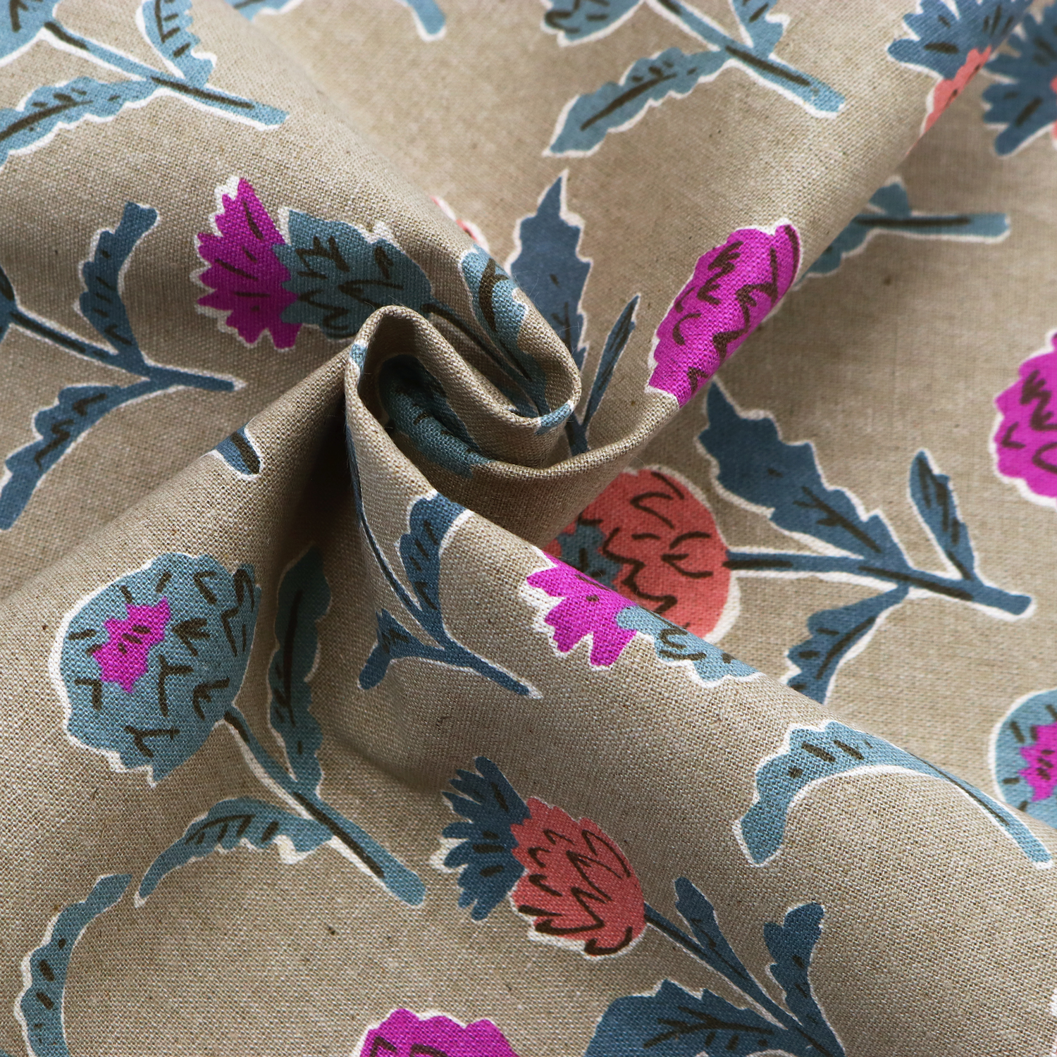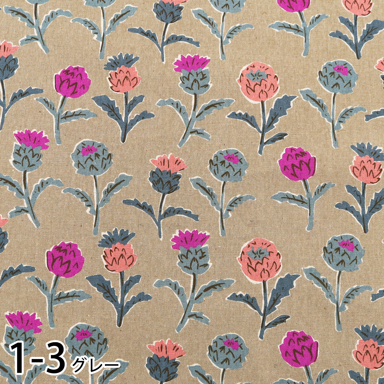 使いやすい花柄モチーフの綿麻キャンバス生地です。