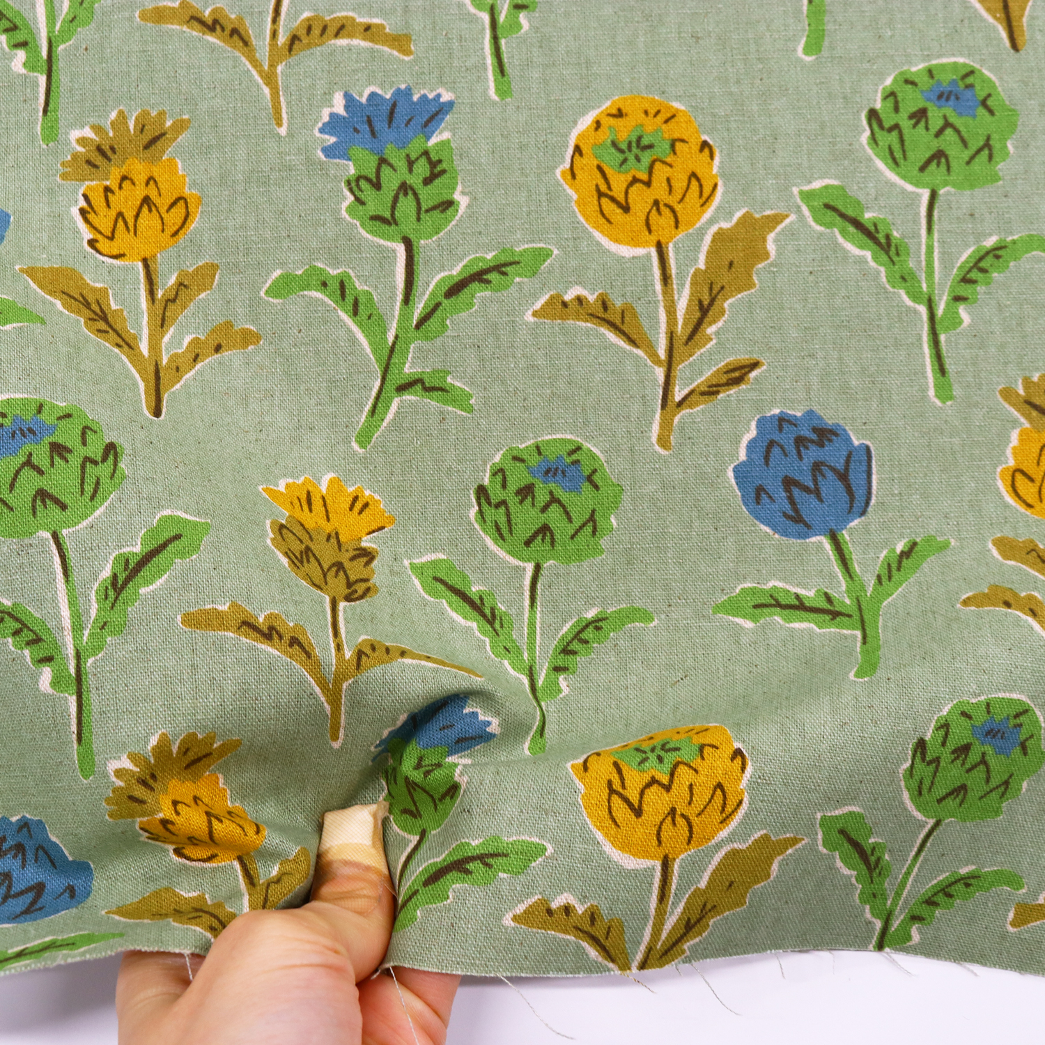 ■B850596R 綿麻キャンバスプリント アーティチョーク 巾約112cm 原反約13m巻 (巻)