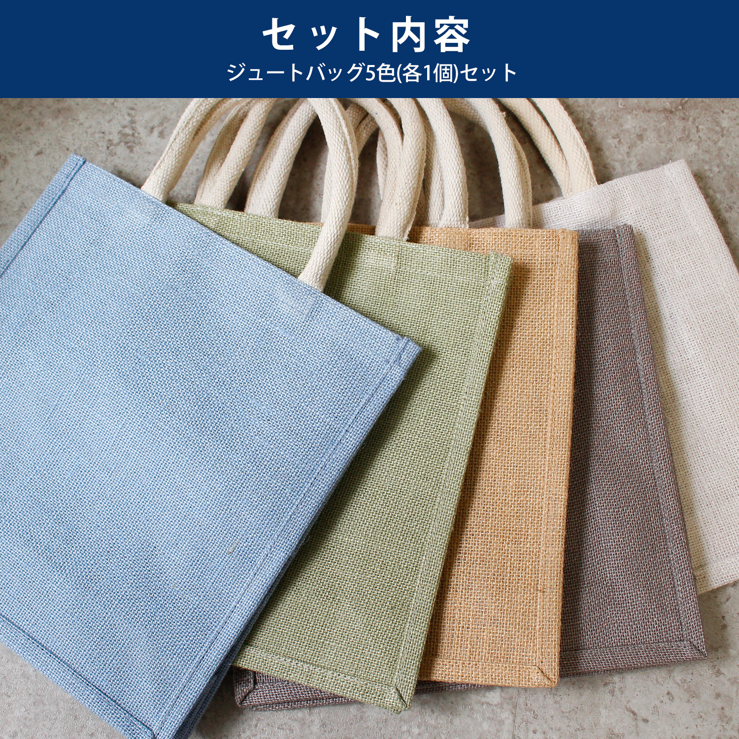 ■ジュートバッグ5色(各1個)セット&刺しゅうリボンアソートセット(ランダム2種)