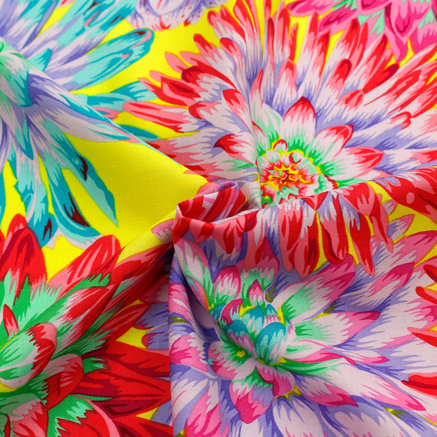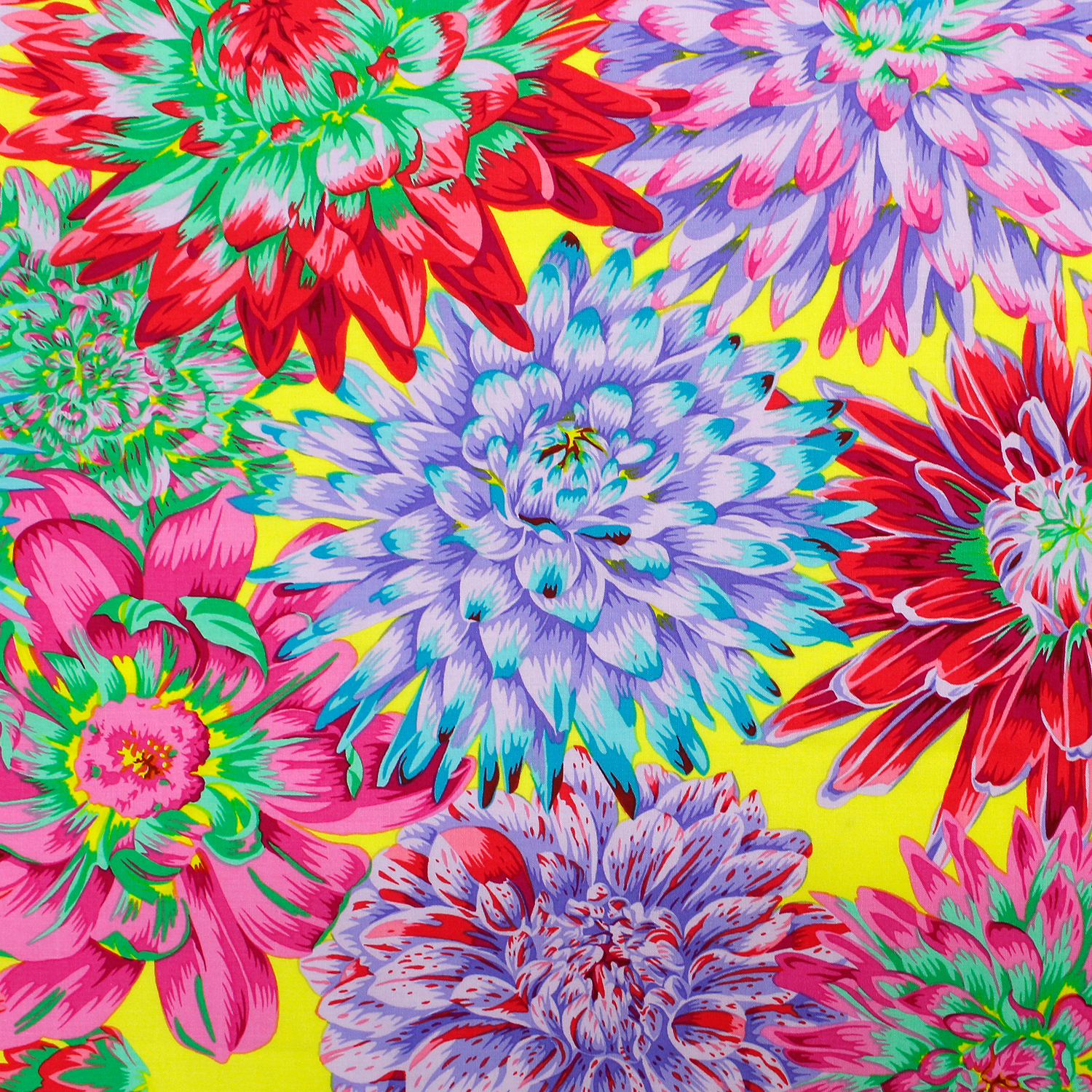 【0127新柄】FSP-916 カクタスダリア イエロー地 FreeSpirit フリースピリット Kaffe Fassett -ケイフ・ファセット- USAプリント m単位 (m)