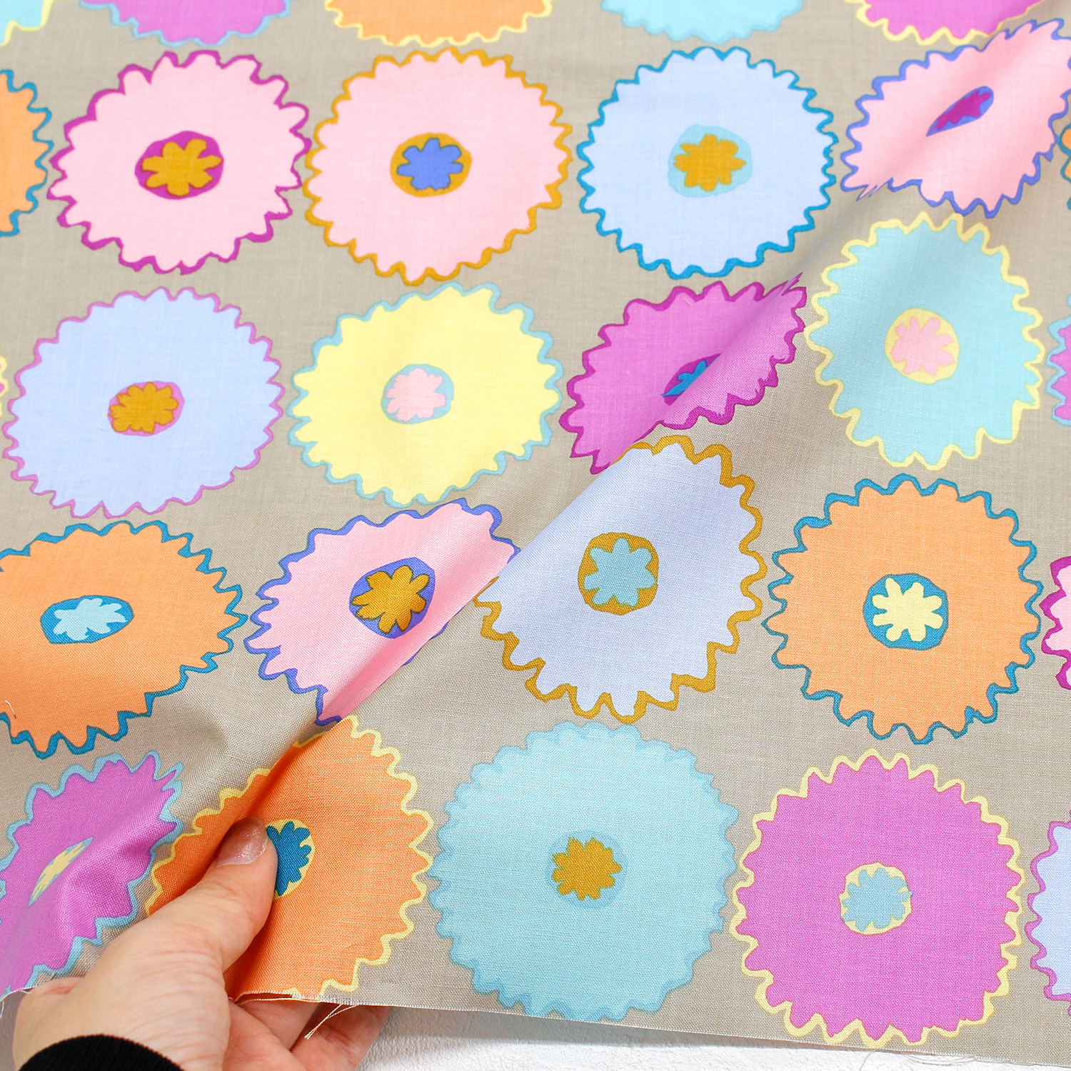 【タイムセール】FSP-928 ピンキングフラワー ブラック地 FreeSpirit フリースピリット Kaffe Fassett -ケイフ・ファセット- USAプリント m単位 (m)