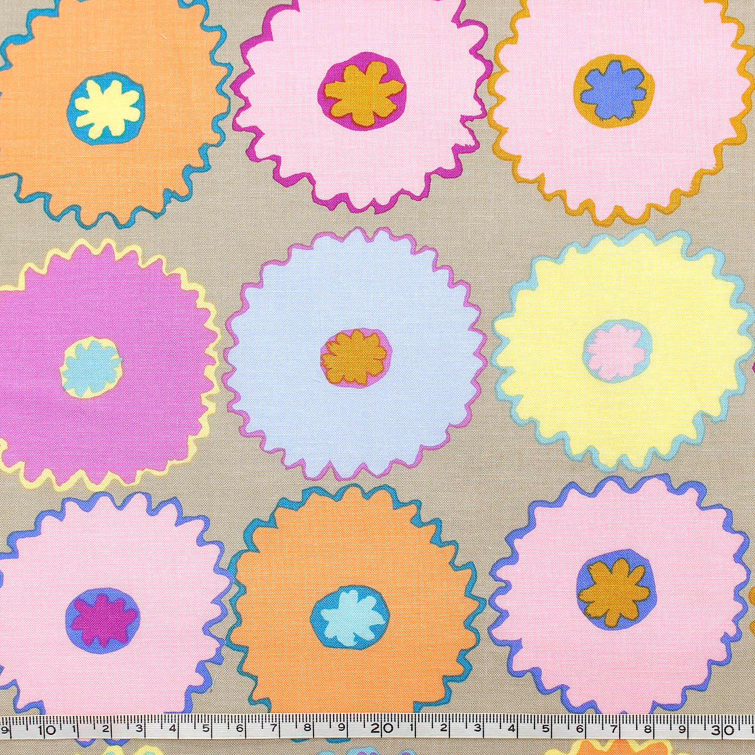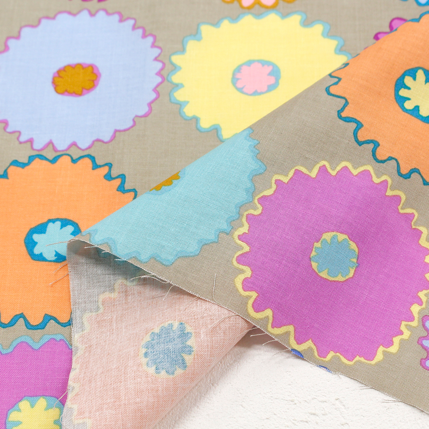 【タイムセール】FSP-930 ピンキングフラワー グリーン地 FreeSpirit フリースピリット Kaffe Fassett -ケイフ・ファセット- USAプリント m単位 (m)