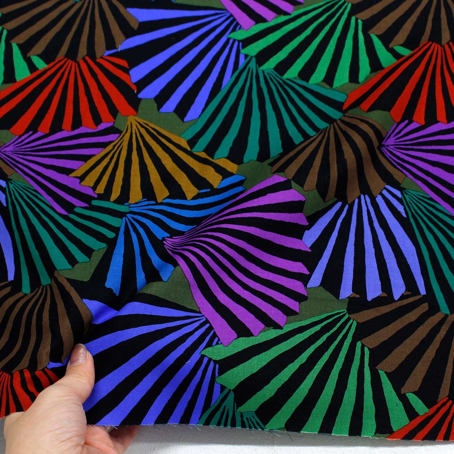 【タイムセール】FSP-931 いろどり扇 ブラック系 FreeSpirit フリースピリット Kaffe Fassett -ケイフ・ファセット- USAプリント m単位 (m)