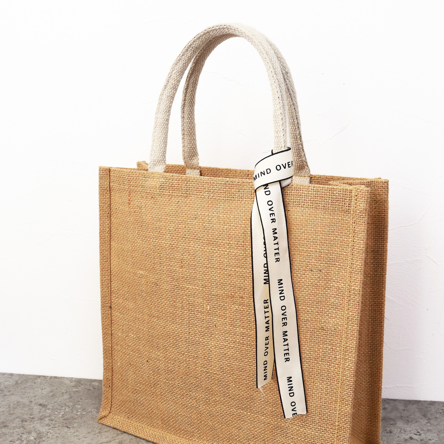 ざっくりとした素材感が魅力。バッグだけでなく、家の収納グッズとしてもインテリアに馴染みます。カジュアルファッションに合うロープのような柔らかいハンドル。ジュートは黄麻を原料としたナチュラルな生地です。黄麻は成長も早く、また光合成も盛んに行う為注目のエコ素材です。