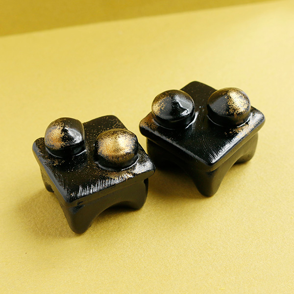 …黒台(18×12cm)+陶器パーツ 三人官女・橘・桜・ひしもち・おぜん+布製ぼんぼり H9cm