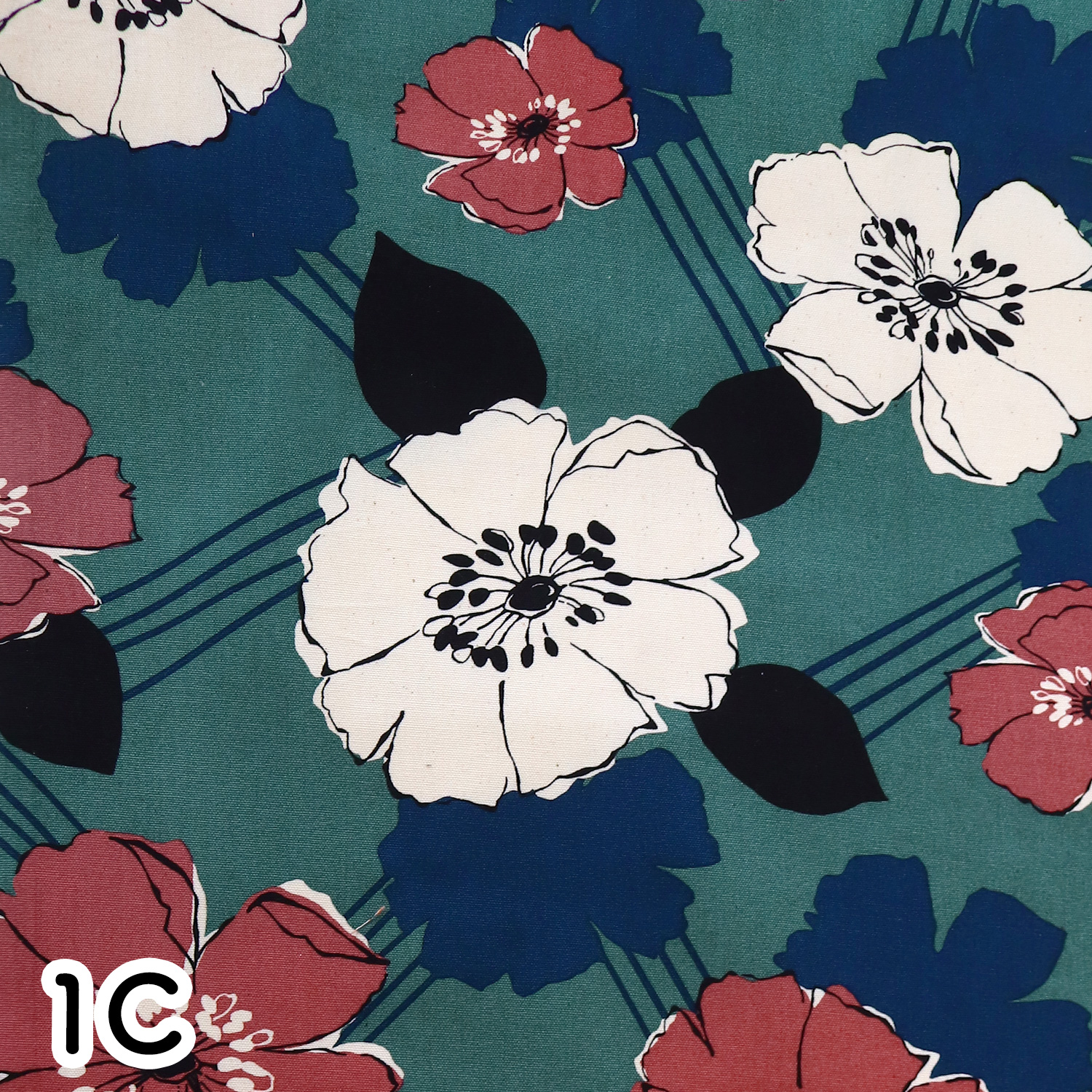 IBK99413-1 オックスプリント生地 花 大柄 巾約110cm 1m単位 (m)