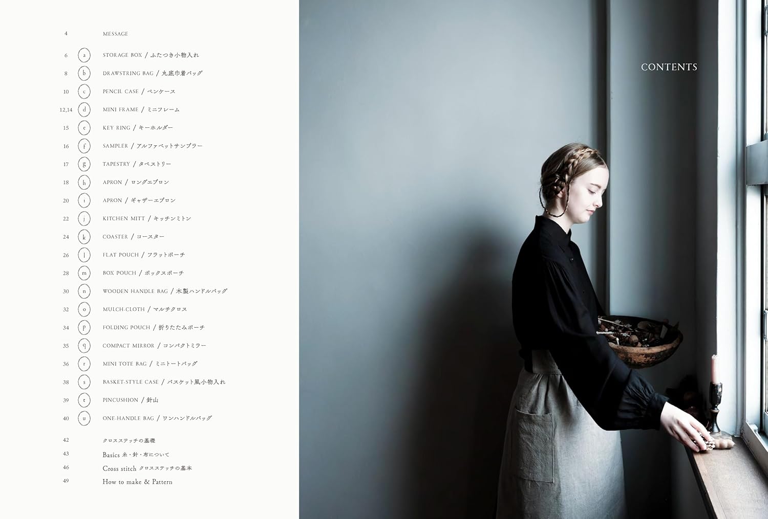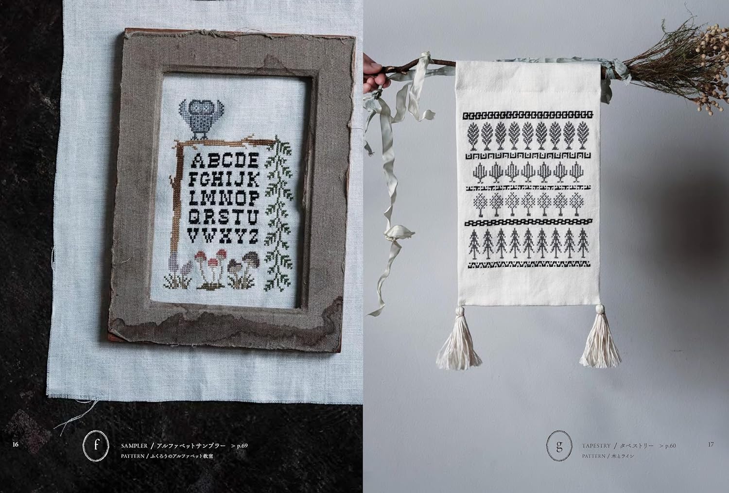 散歩の途中で目に留まった草木や建物、ヴィンテージジブックの表紙や古い植物図鑑などからインスピレーションを得たクロスステッチの図案と布小物集。風合いのあるリネンに落ち着いた色味の糸でステッチを施したバッグ、小物入れ、ポーチ、エプロンなど、暮しを彩る小物28点。クロスステッチの基礎と小物の仕立て方も丁寧に解説
