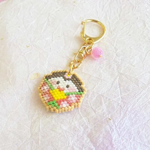 アイシングクッキーをモチーフにした、可愛らしいひな祭りのキーホルダーを作るビーズステッチキットです。