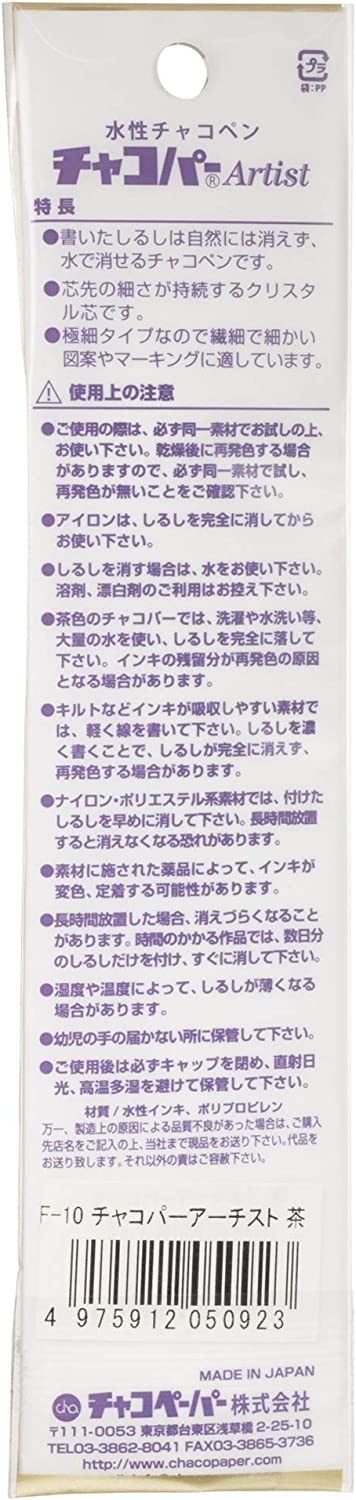【+1個サービス】【刺繍受注会】F10 水性チャコペン チャコパー アーチスト 極細 全長14cm 同品番10本購入毎に1本サービス (本)