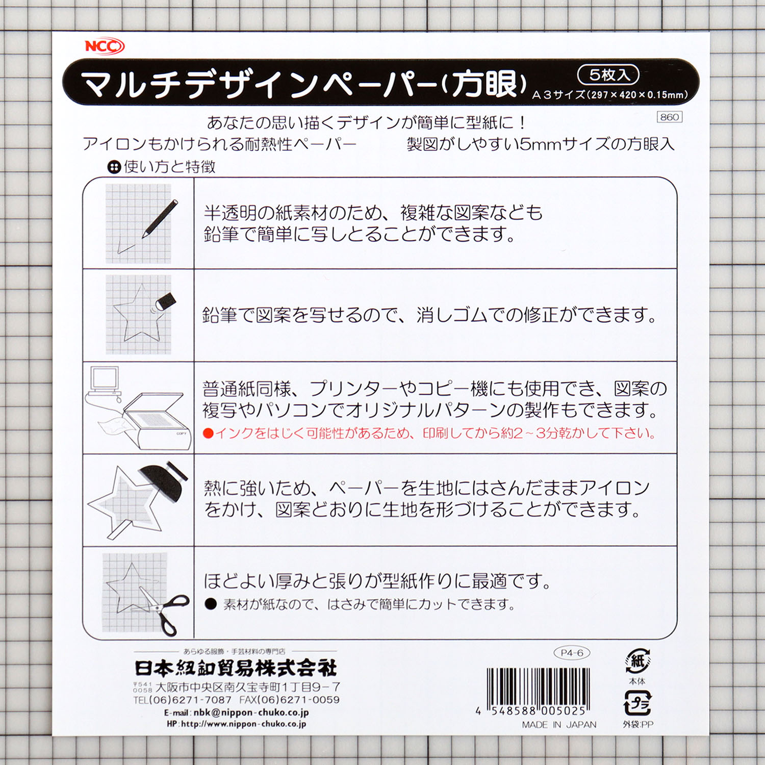 【+1個サービス】P4-6 マルチデザインペーパー 方眼 5枚 同品番10袋購入毎に1袋サービス (袋)