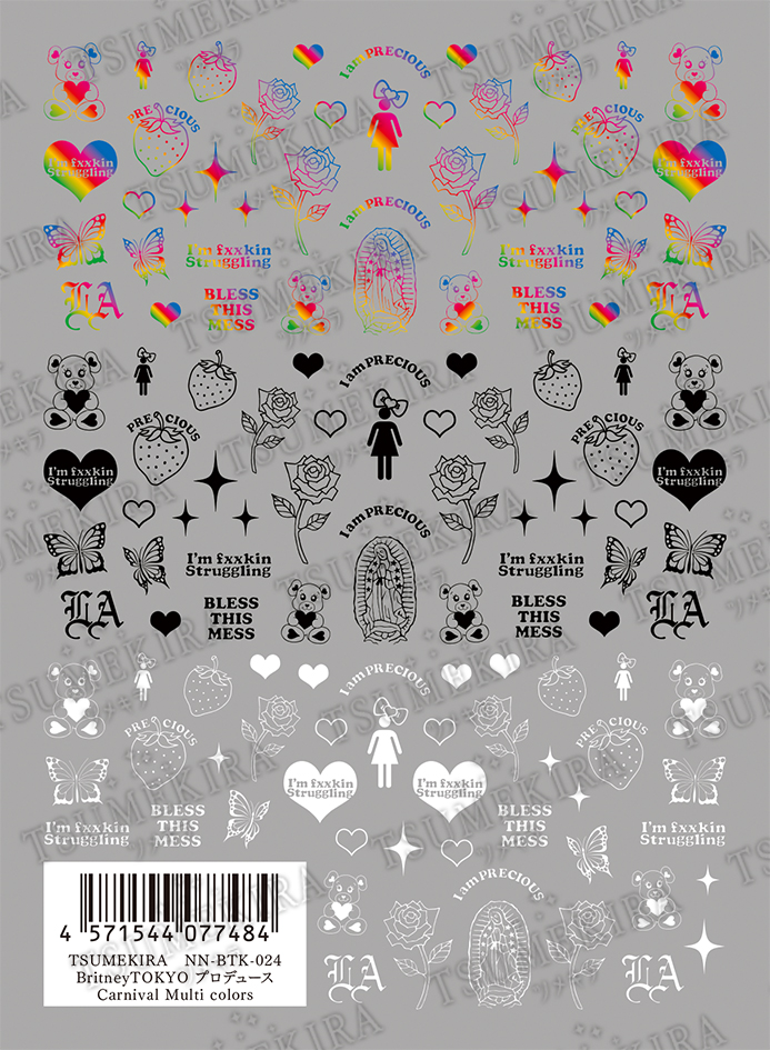 【お取り寄せ・返品不可】NN-BTK-024 BritneyTOKYOプロデュース Carnival Multi colorsツメキラ ネイルシール 2026年2月発売 (枚)