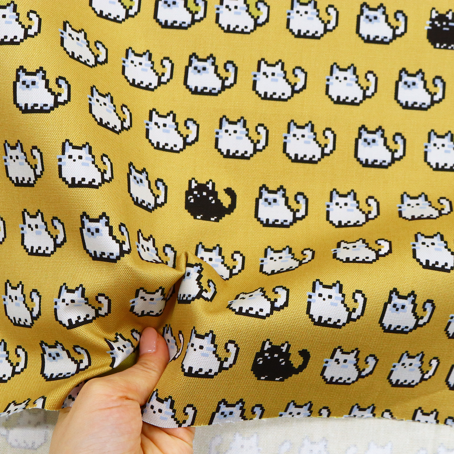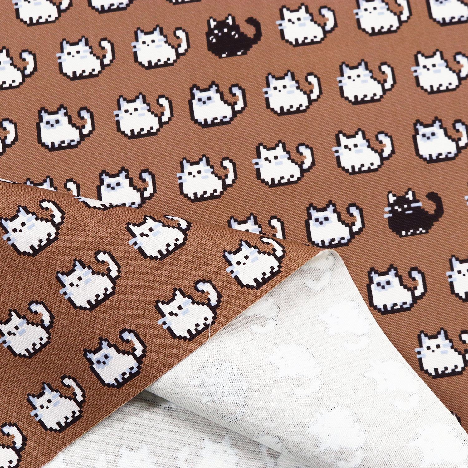 IBK99402-1 ピクセルネコ オックスプリント生地 巾約110cm 1m単位 (m)