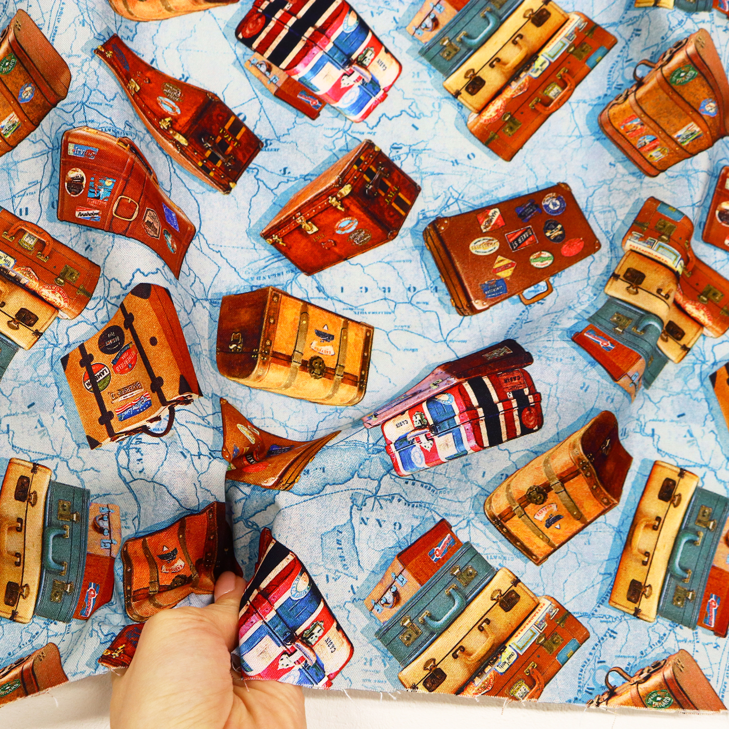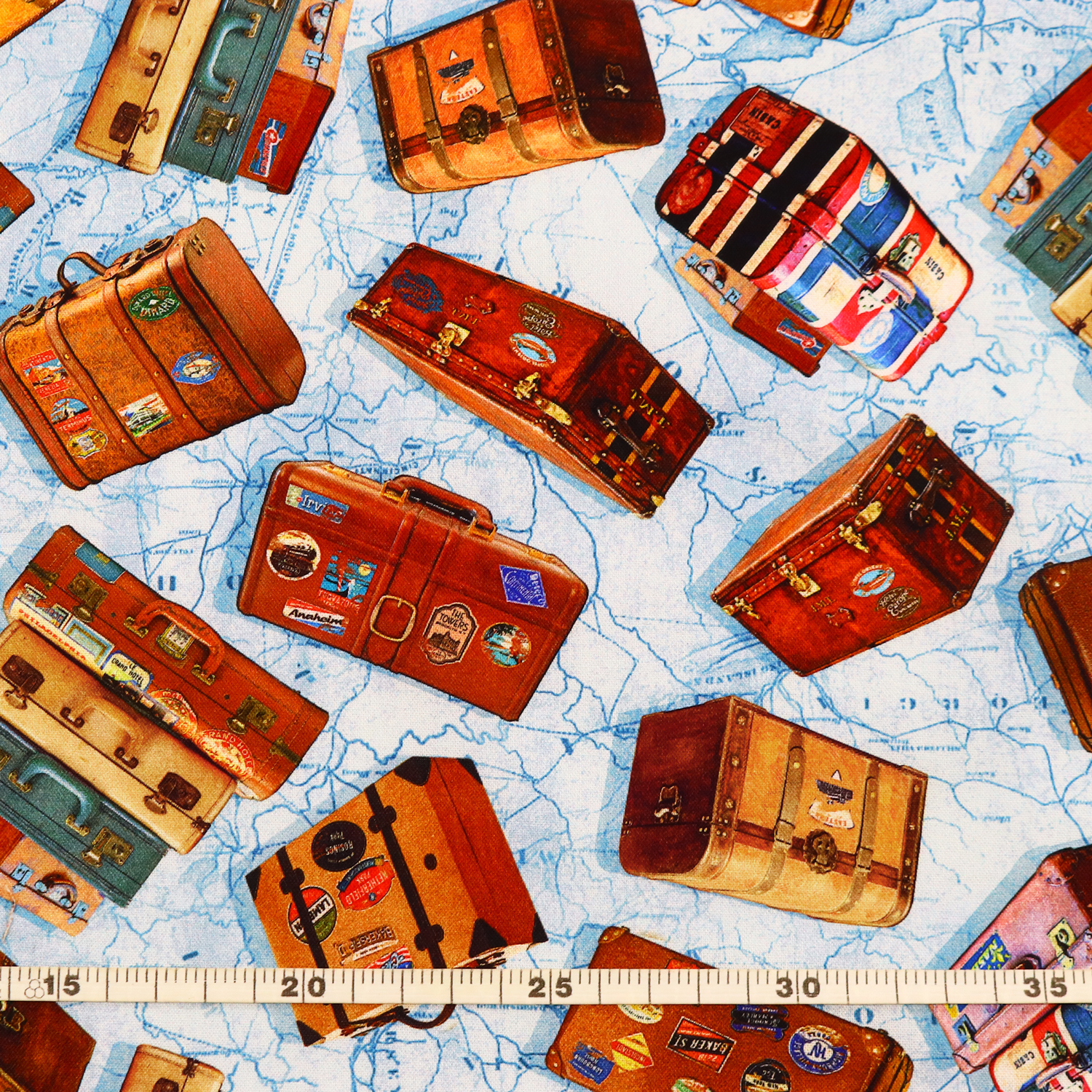 MICH11580-S Michael Miller マイケルミラー USAプリント 旅行用トランク水色 巾約110cm 1m単位 (m)