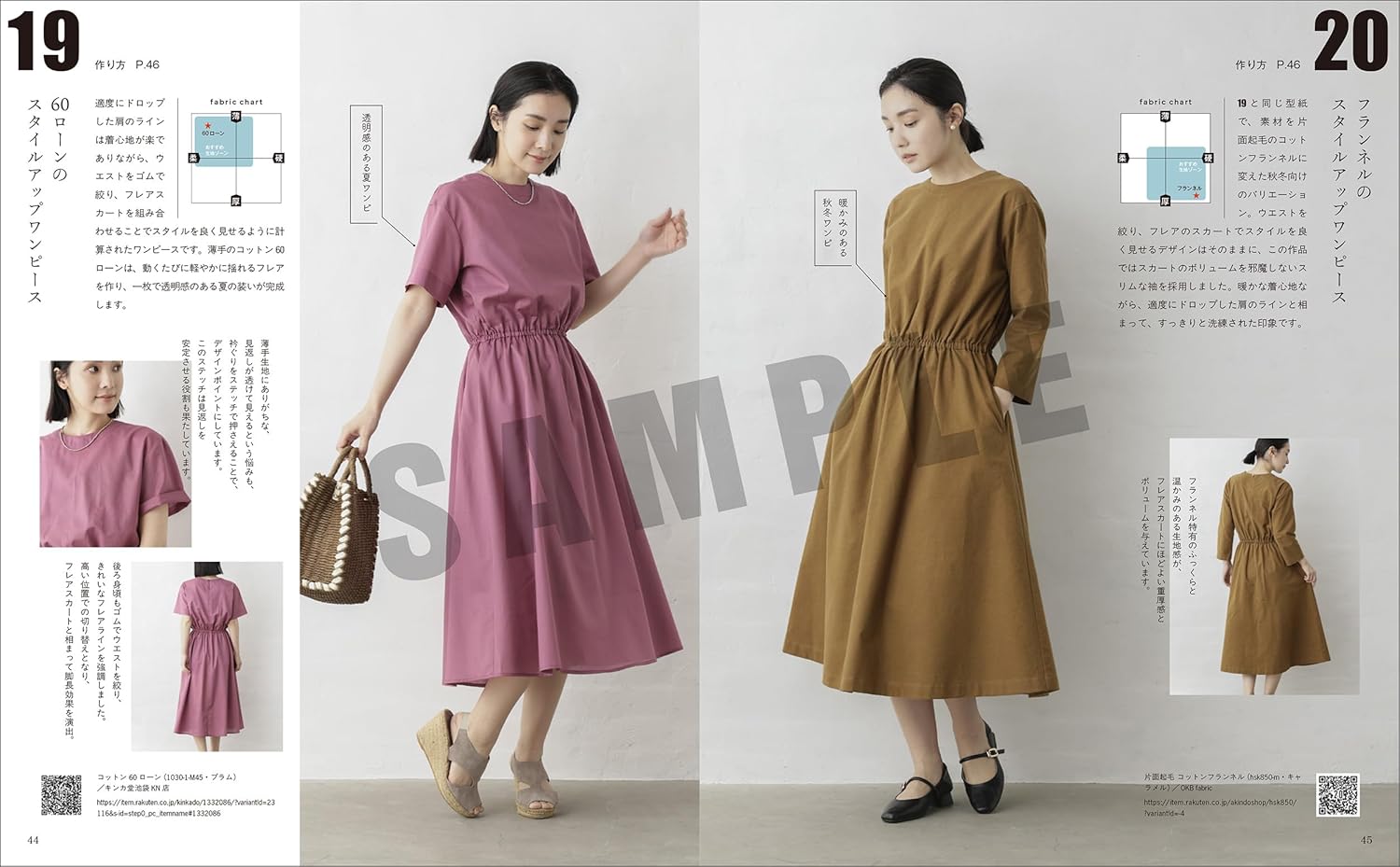 本書では、それぞれのコットン生地の特性と適したアイテムを学びながら、思い通りの仕上がりになる服を提案しています。