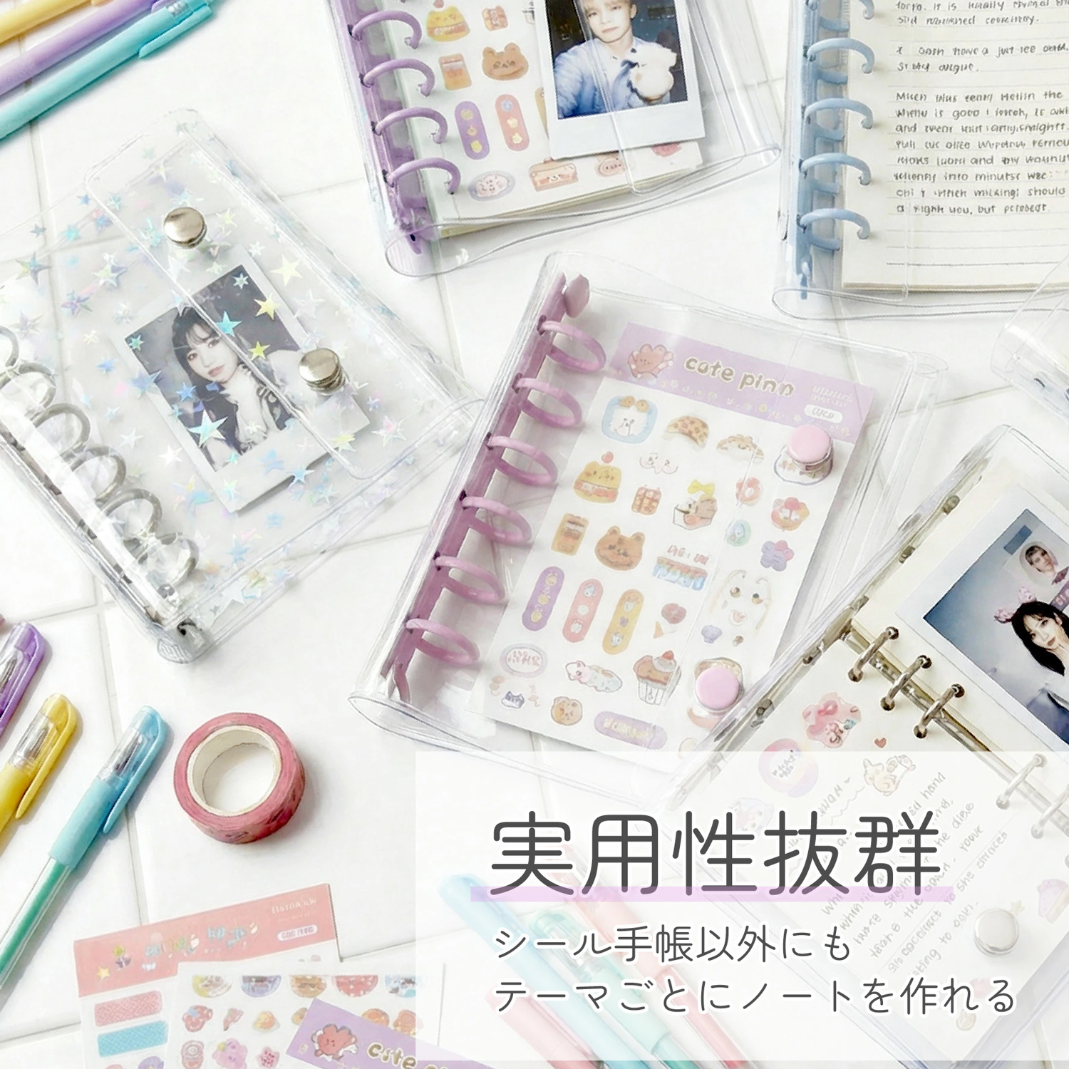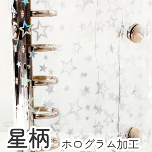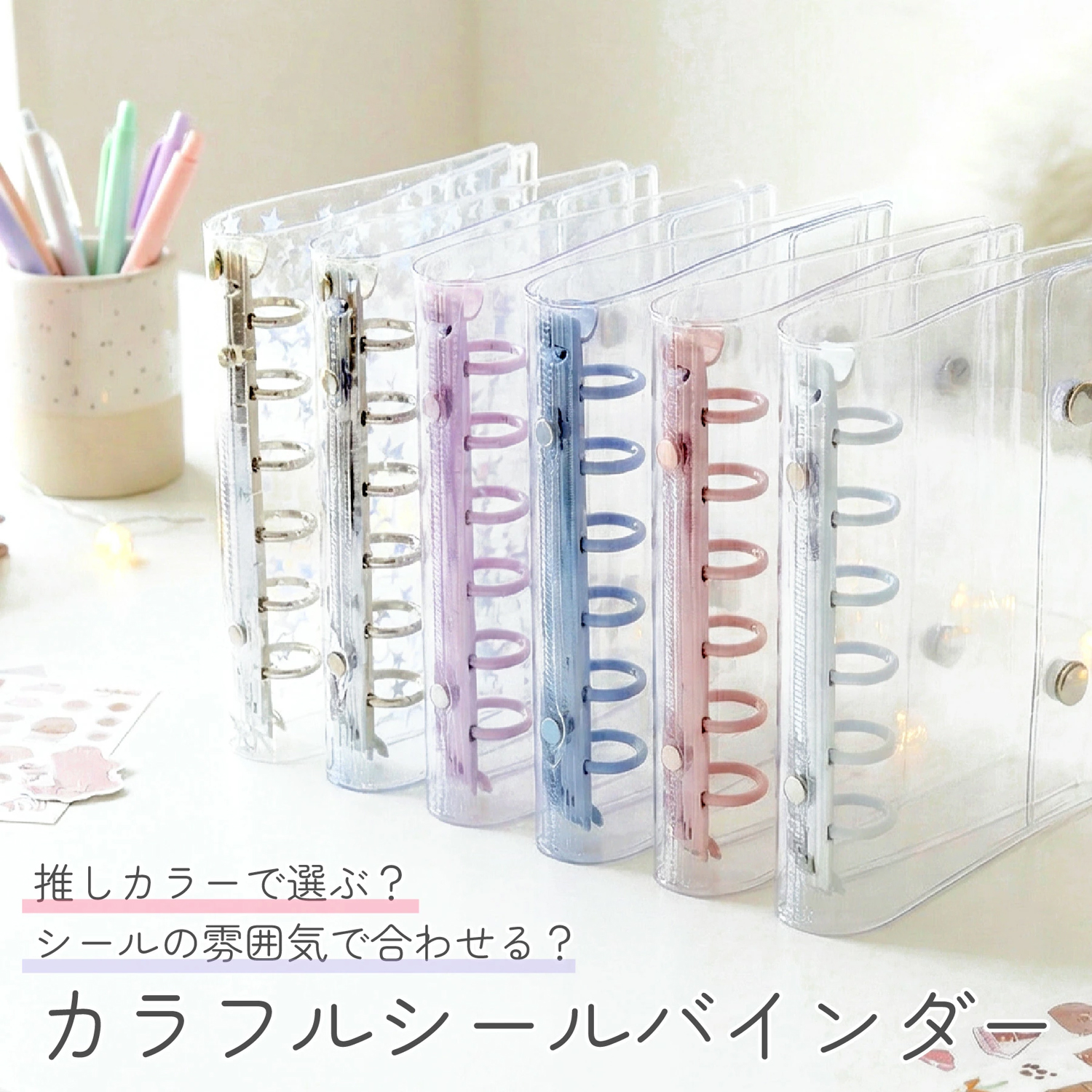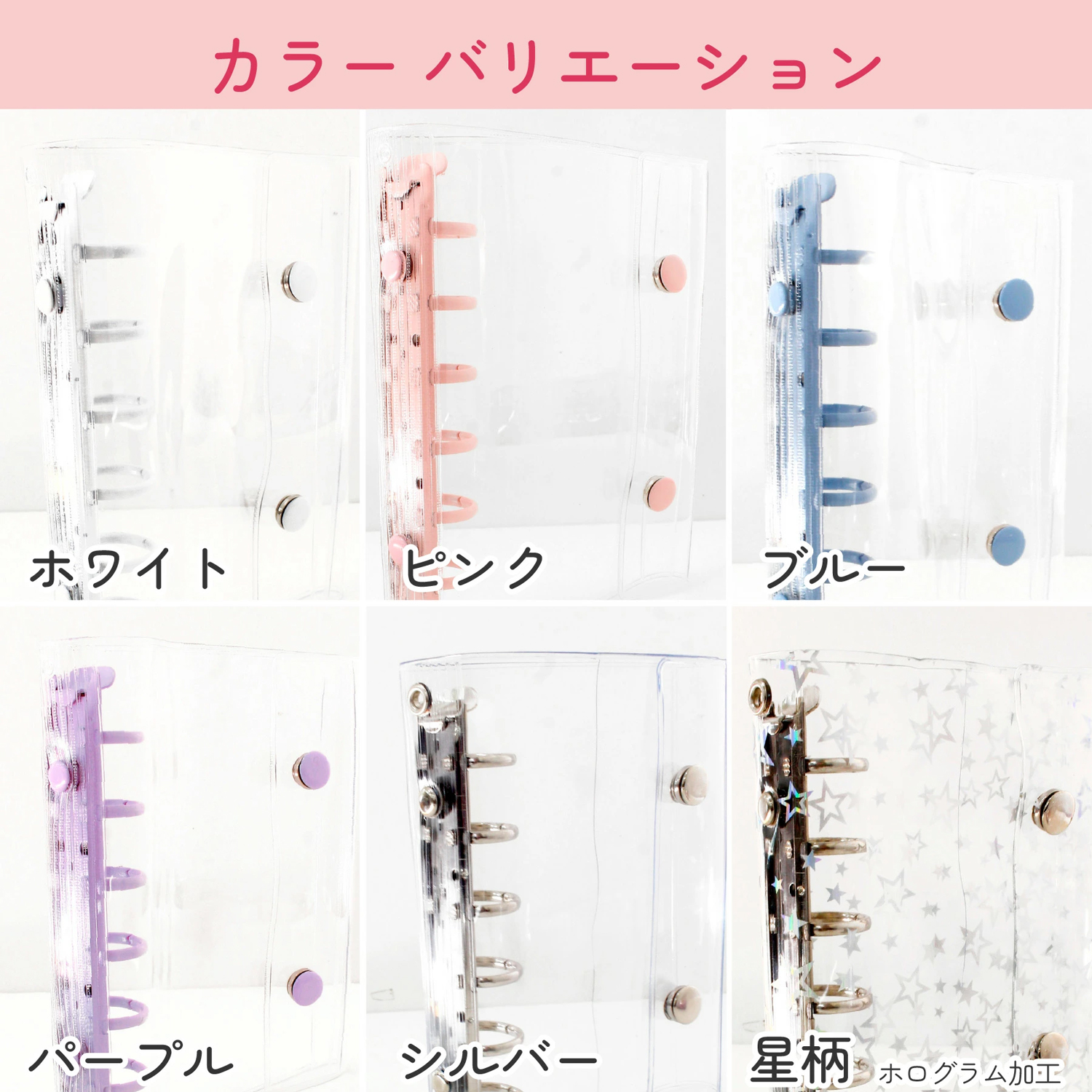 キーホルダーをつけても可愛い透明バインダーで、リング部分のカラーバリエーション&ホログラム星柄をご用意!
