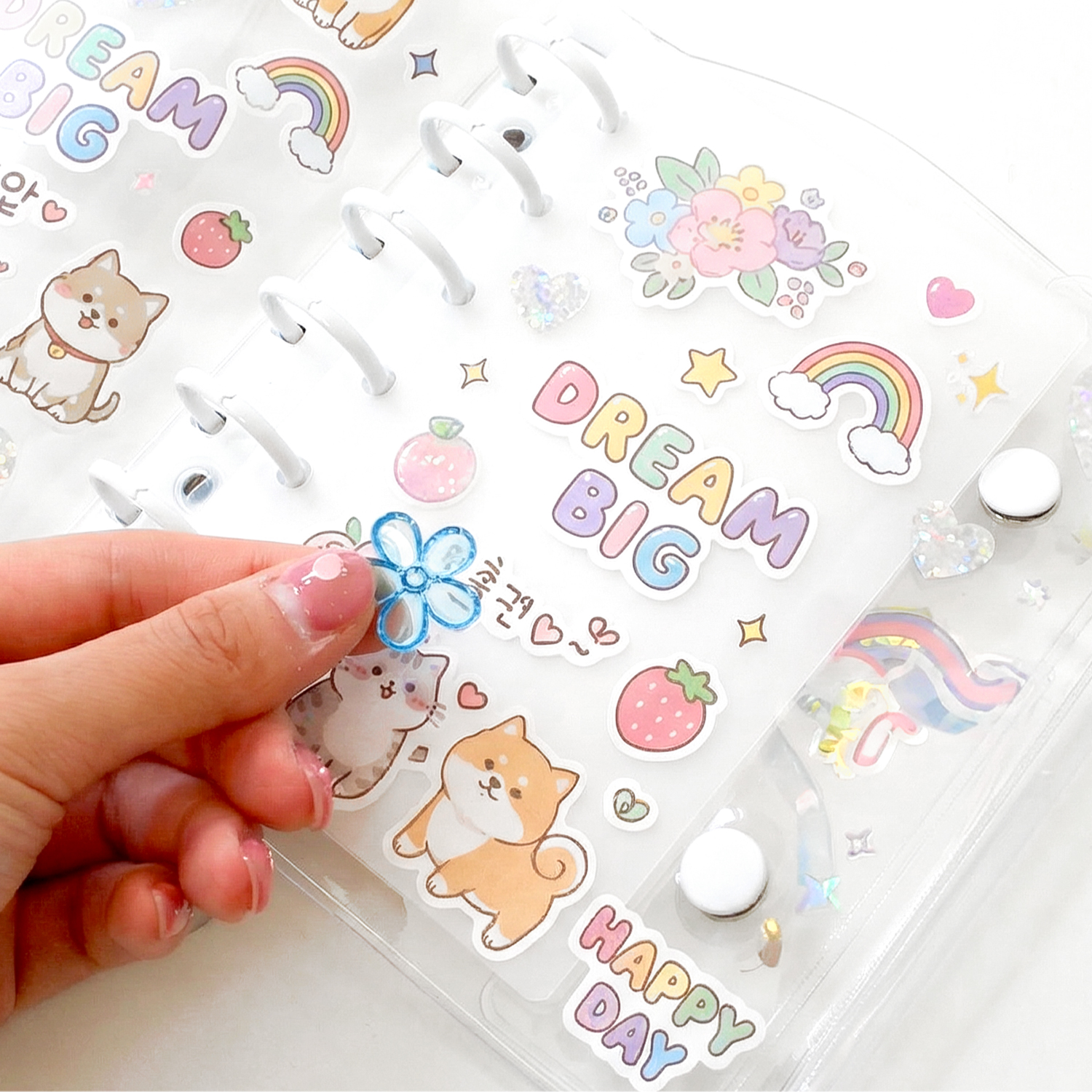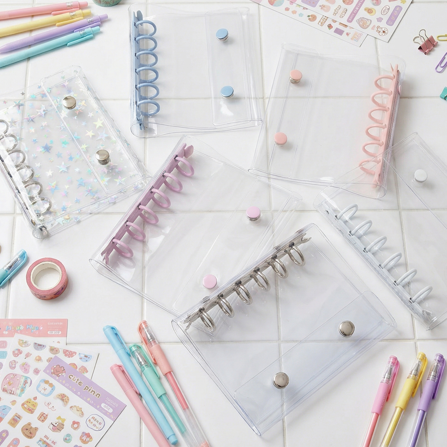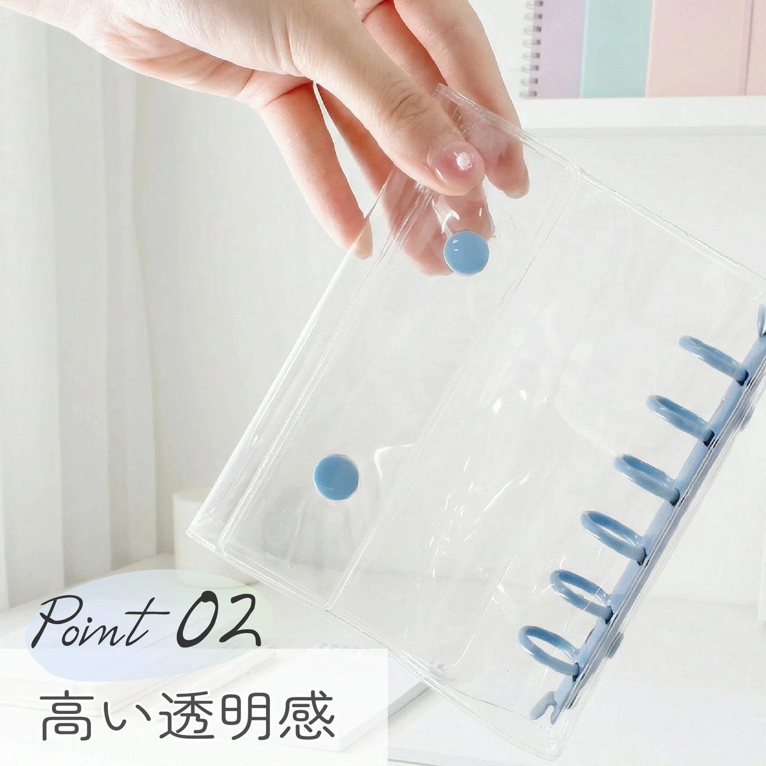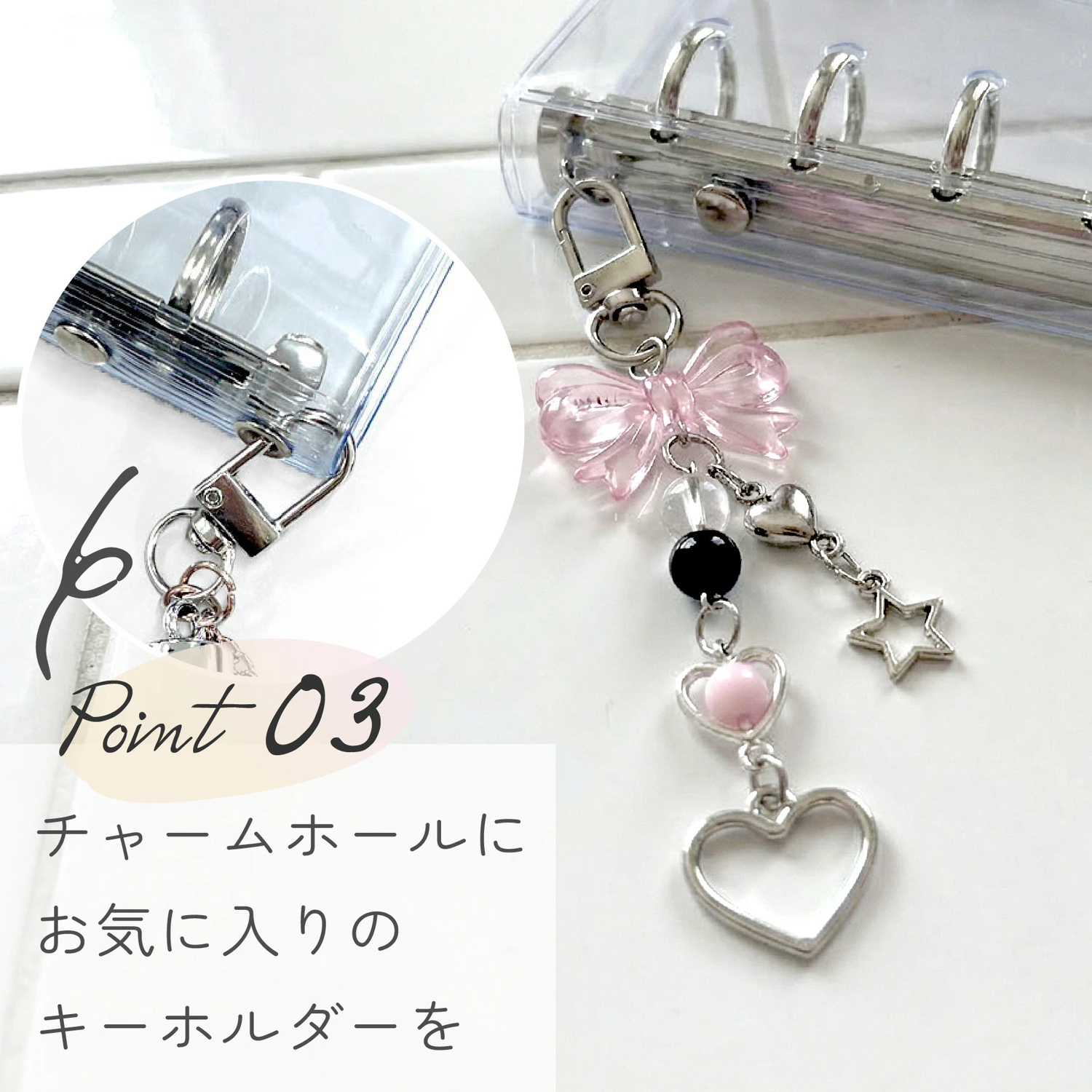 キーホルダーをつけても可愛い透明バインダーで、リング部分のカラーバリエーション&ホログラム星柄をご用意!