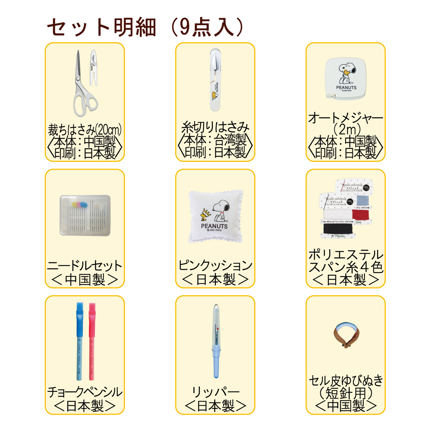 MIS8654 スヌーピーソーイングセット クラフトバッグラウンドタイプ 9点セット (個)