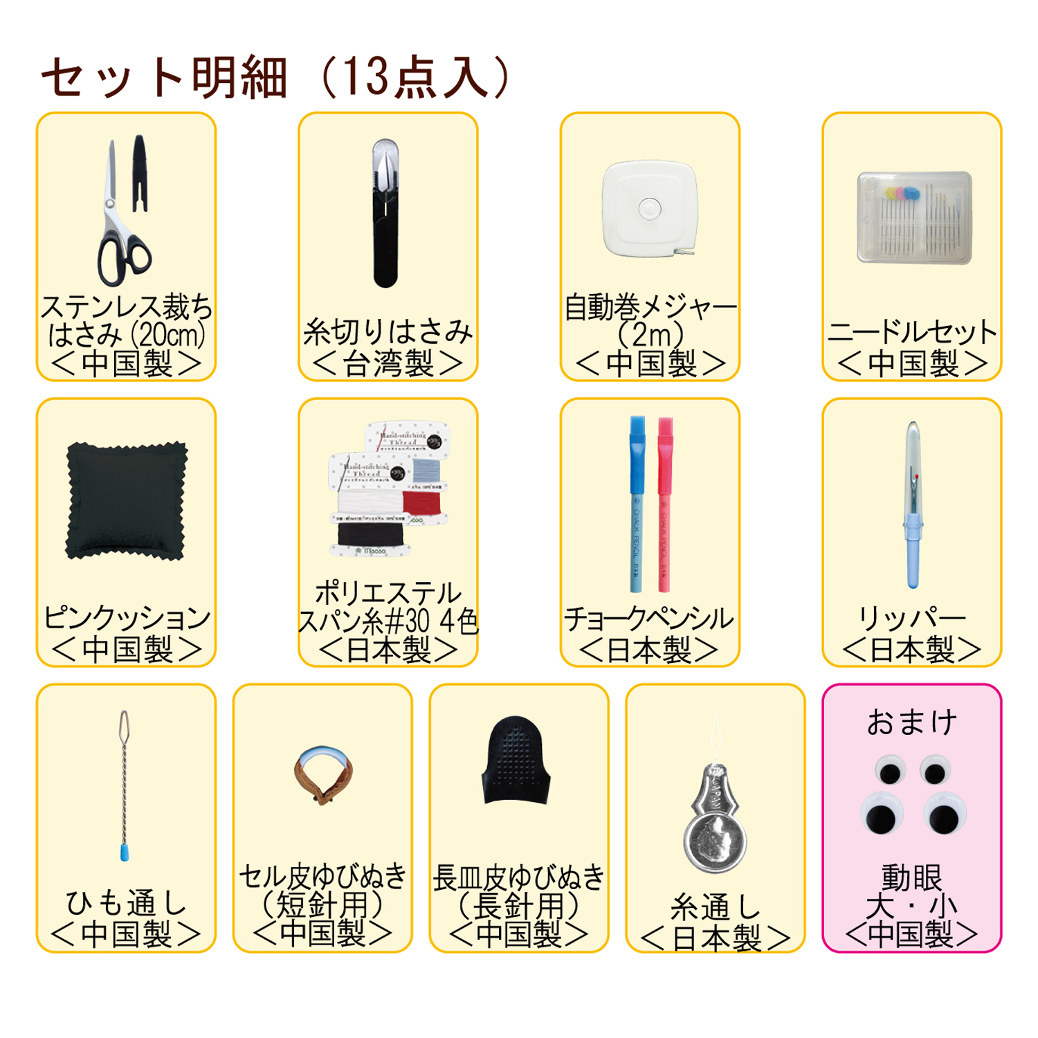 MIS18952 ミササ ソーイングセット モンスターブラック ファスナーバッグタイプ 13点セット(個)