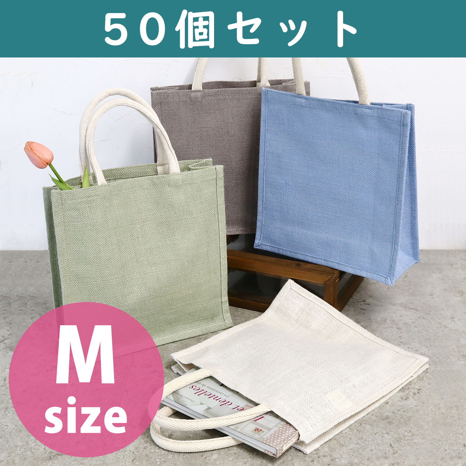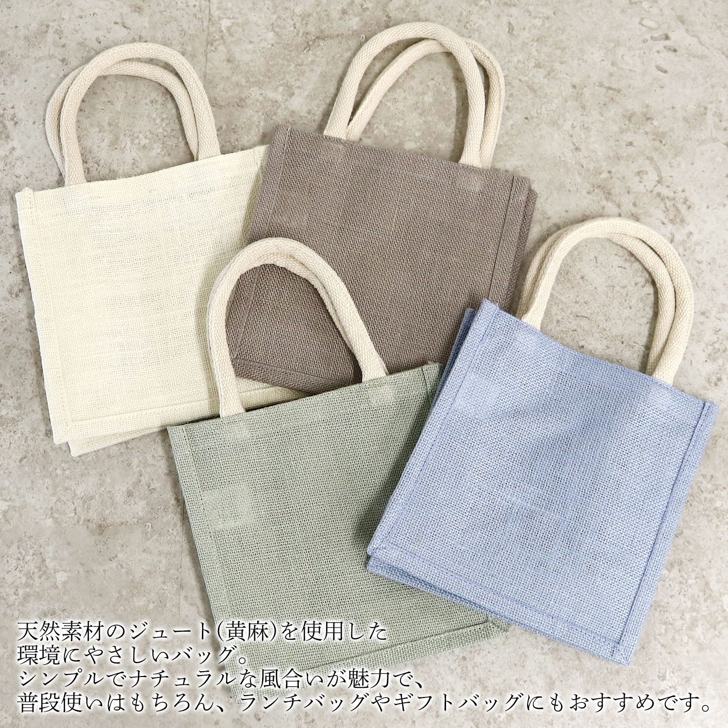 ES105~108-50 ジュートバッグ スクエア Sサイズ ナチュラルカラー 同色50個セット (セット)