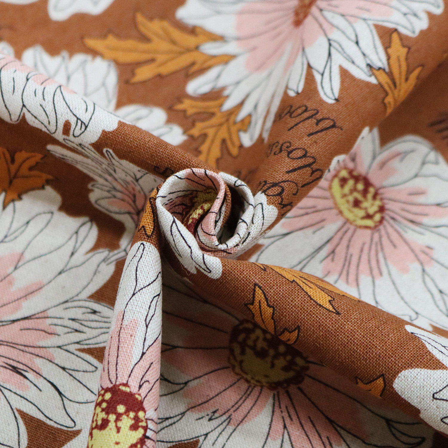 AS7800-5 綿麻キャンバス生地 花柄 巾約110cm 1m単位(m)