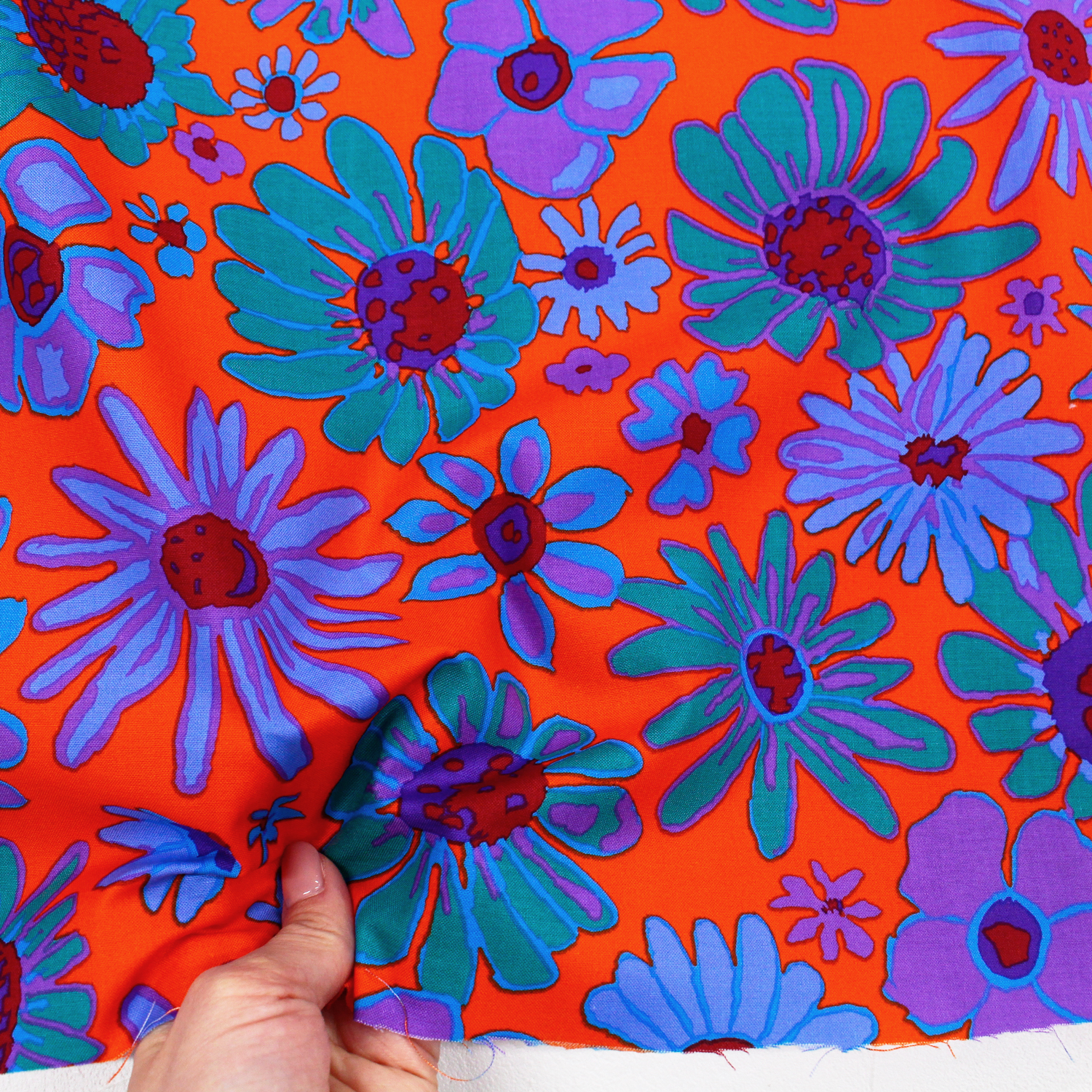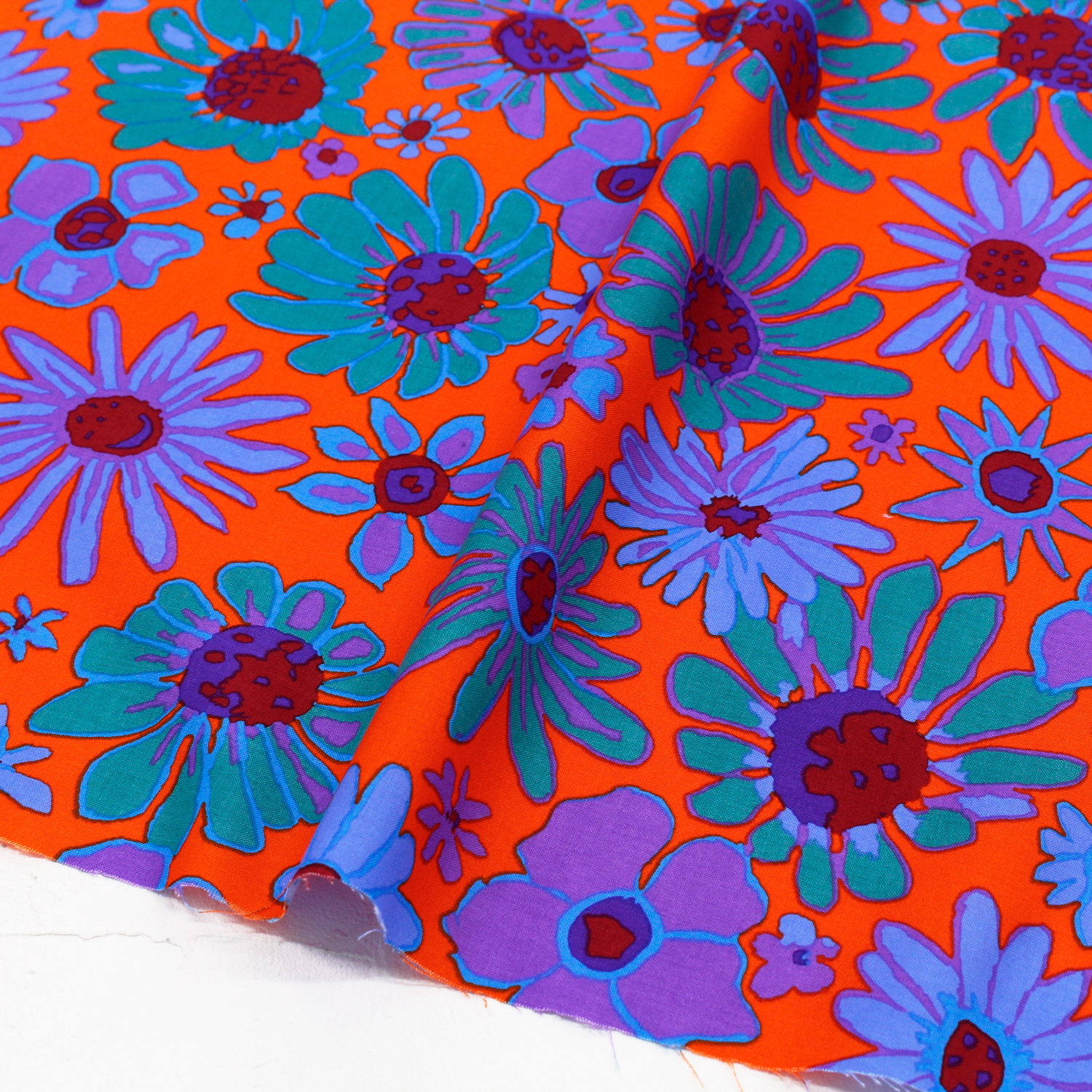 【0324新柄】FSP-936 オレンジ地 緑紫 レトロフラワー ポップカラー USAプリント生地 Kaffe Fassett -ケイフ・ファセット- FreeSpirit フリースピリット USAプリント m単位 (m)