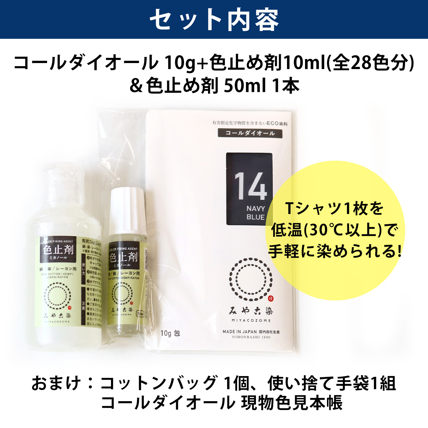 【第一弾・4/8まで】ECOA-10SET-ALL 低温染料10g 全28色&色止剤50mlセット+バッグ&現物見本帳おまけ付き (セット)