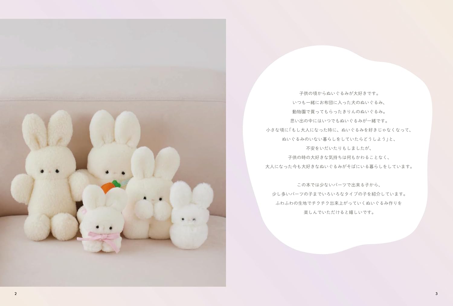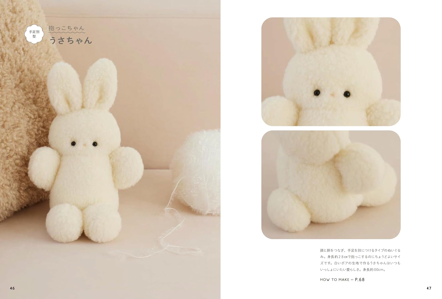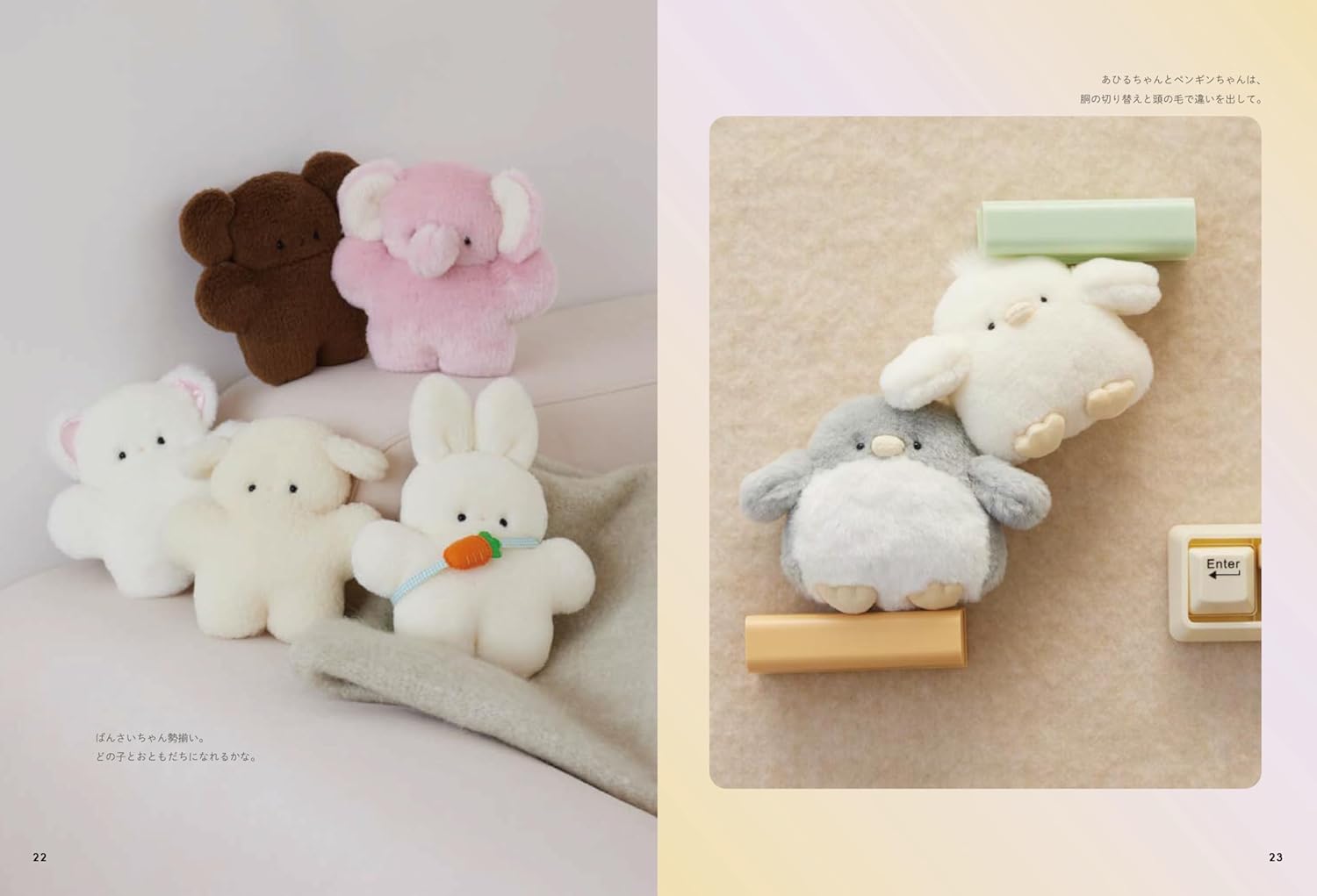 instagramのフォロワー1.3万人の人気ぬいぐるみ作家 うさのすけ(@fuwafuwamofumofu88)のどうぶつのぬいぐるみが作れる本。型紙の枚数は少なく、比較的簡単な作り方で仕上がるフェイクファーやボアなどを用いて、ばんざい型、抱っこ型、まるまる型など6つの型をアレンジして作る、ぞう、くま、うさぎ、ねこ、ひつじ、ペンギン、こやぎ、いぬなど愛らしい動物20点を掲載。マントやにんじんポシェットなども掲載。サイズも手頃なものから抱っこサイズ、マスコットにできる小さなものまで紹介。親しみやすく、ふわふわで、子供から大人まで楽しめます。実物大型紙とうさぎのプロセスレッスンつき。1冊にうさのすけさんの世界が詰まっています。
