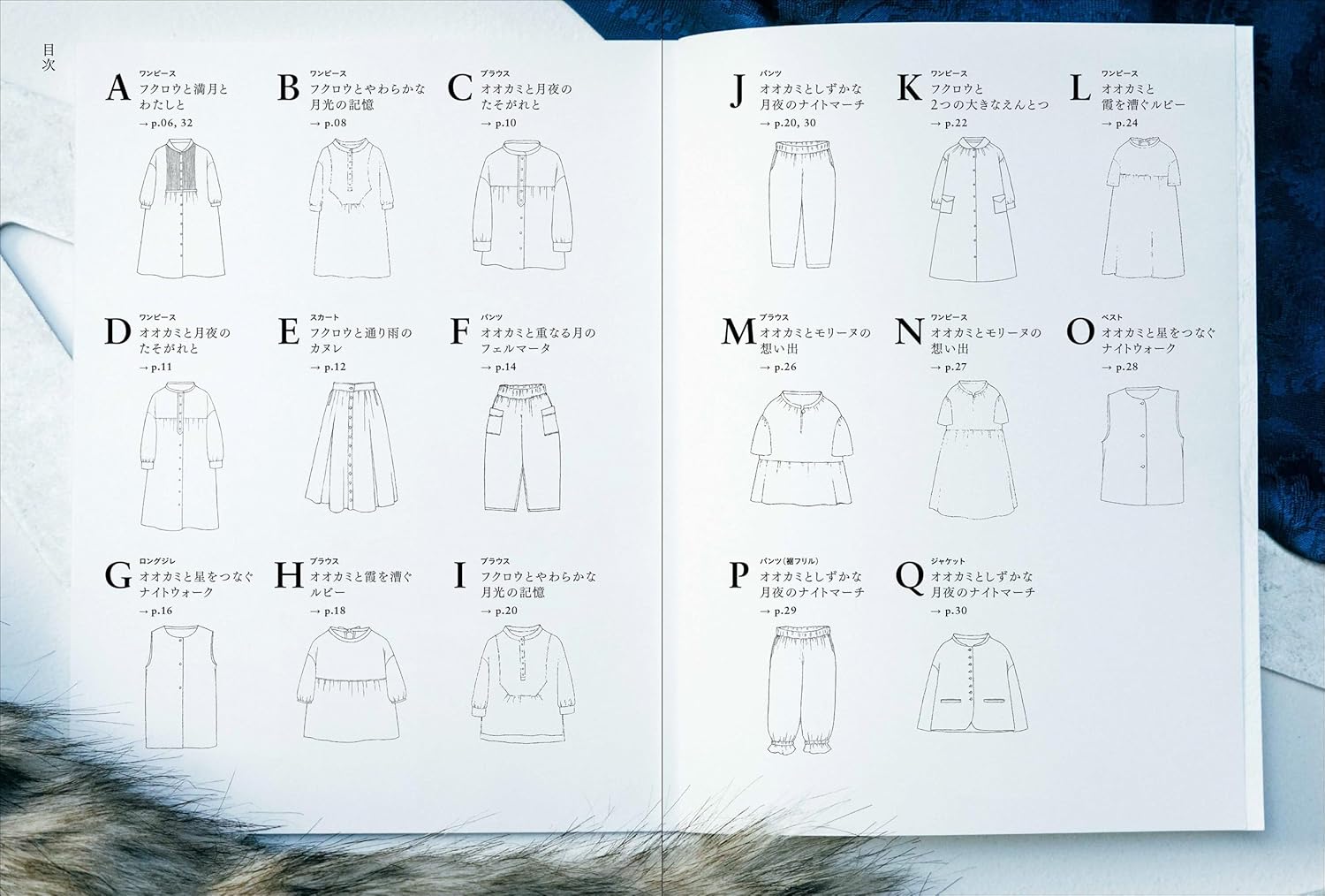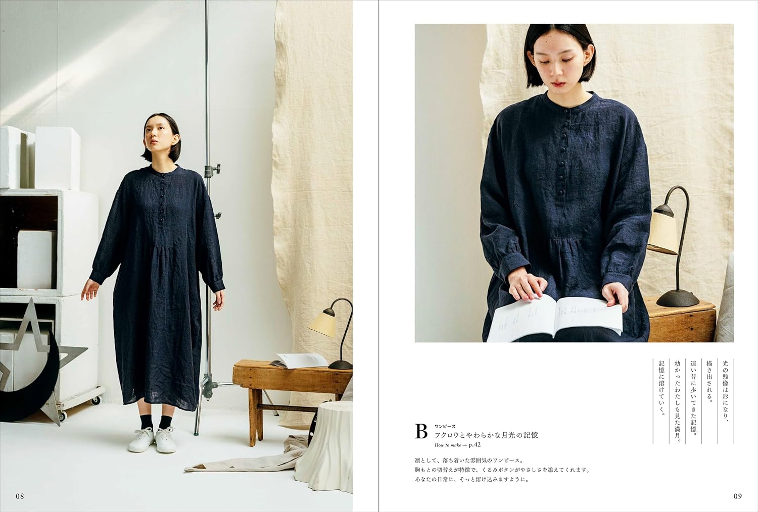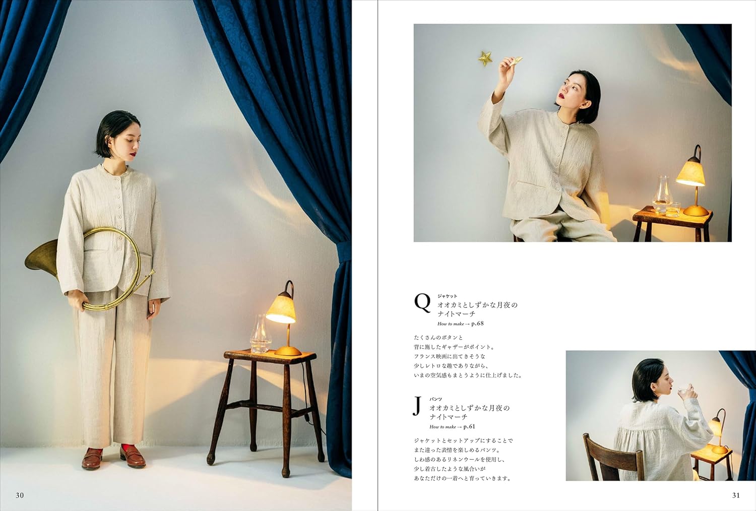 「オオカミとフクロウ」デザイナー中野智之による作品集。日常にも特別な日にも重宝するワンピースを中心に、ブラウス、パンツ、ベスト、ジャケットなどブランドのアーカイブと新作を紹介。S、M、Lの縫い代つき実物大パターンつき。