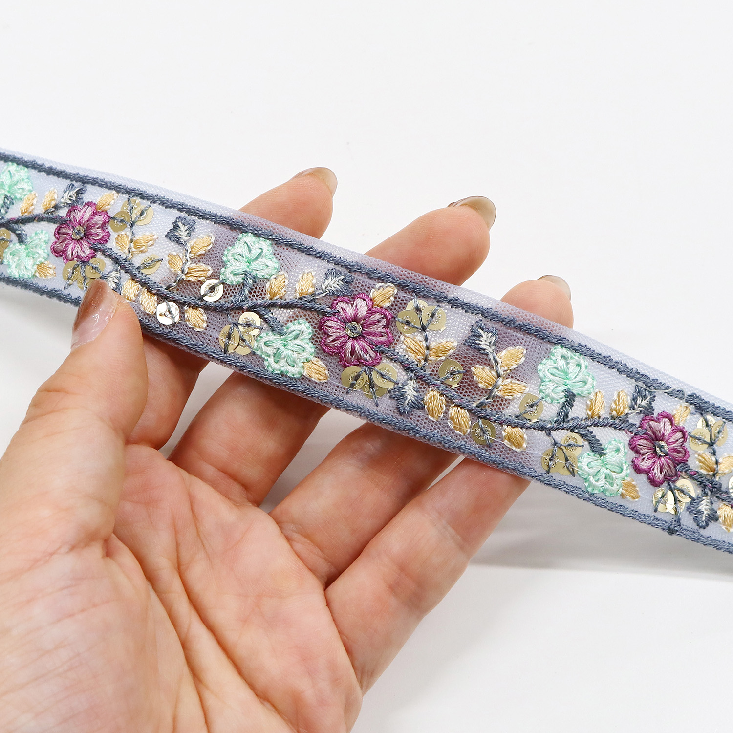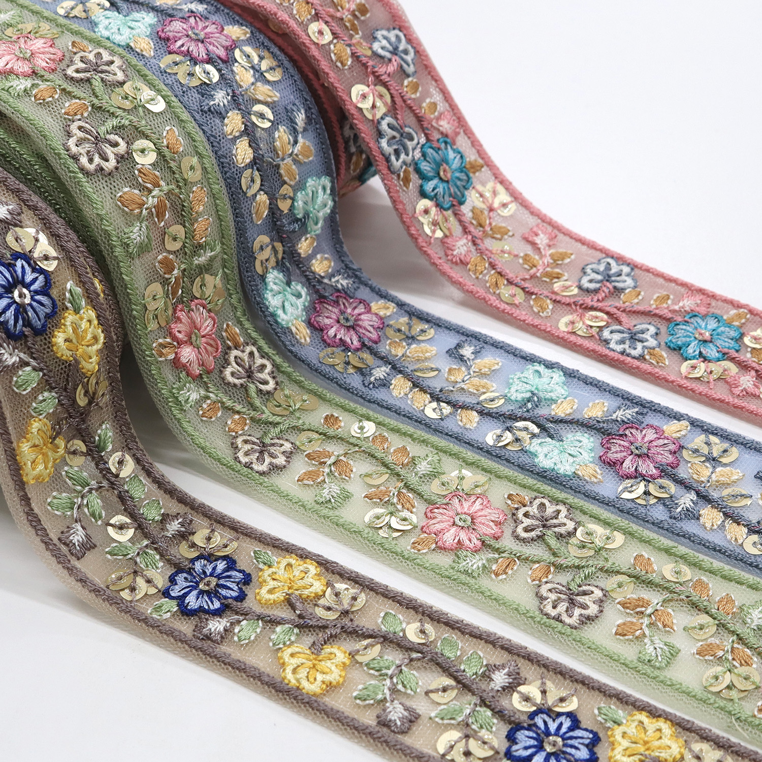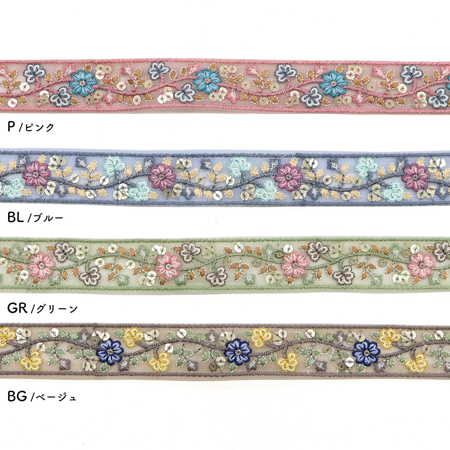 【0404新柄】KF-R196-10Y インド刺繍リボン 巾約2.5cm×原反約9m (巻)