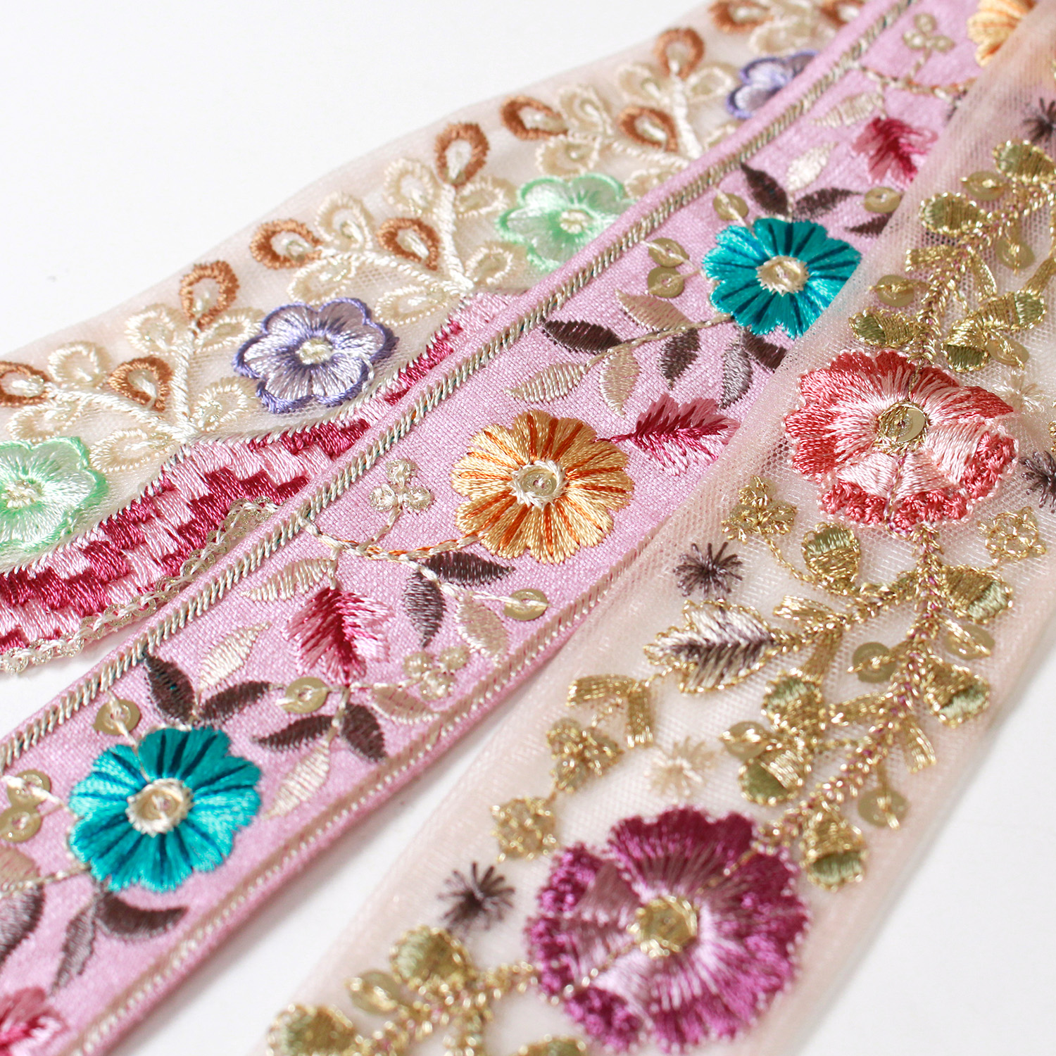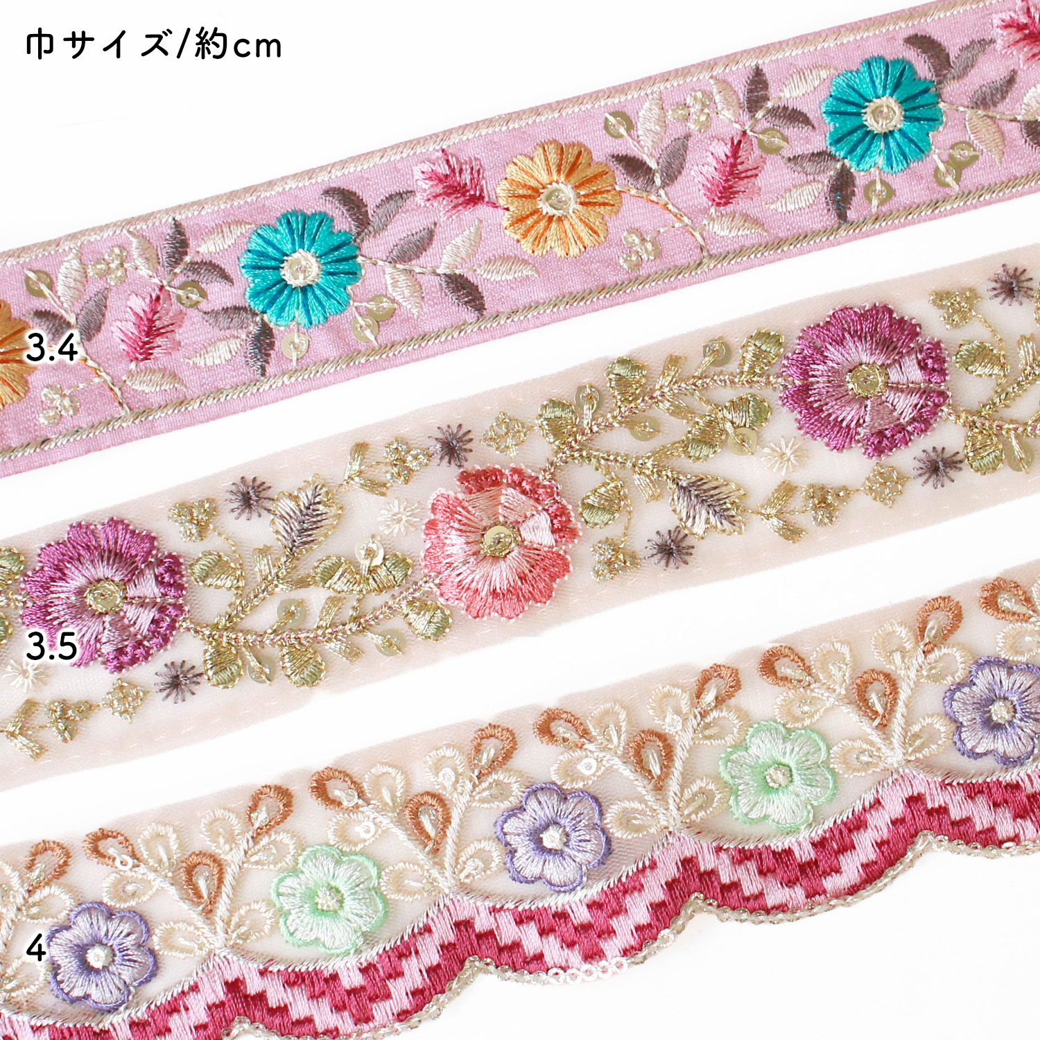 KF-RMIX-131 インド刺繍リボン ホワイトアソート 約30cm×3本 (袋)