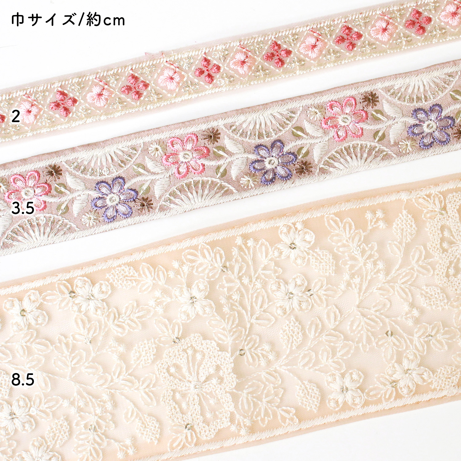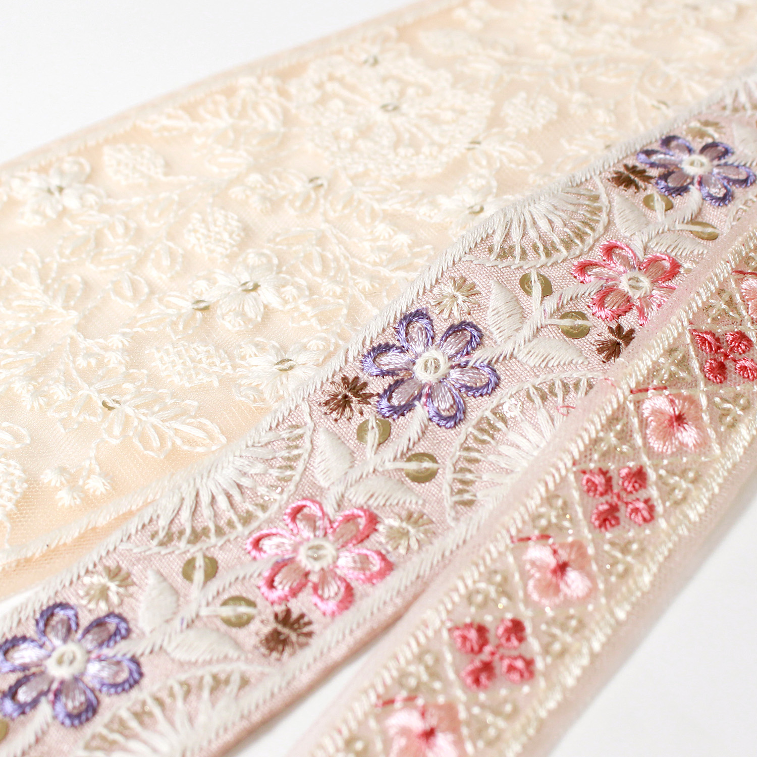 KF-RMIX-137 インド刺繍リボン ベージュアソート 約30cm×3本 (袋)