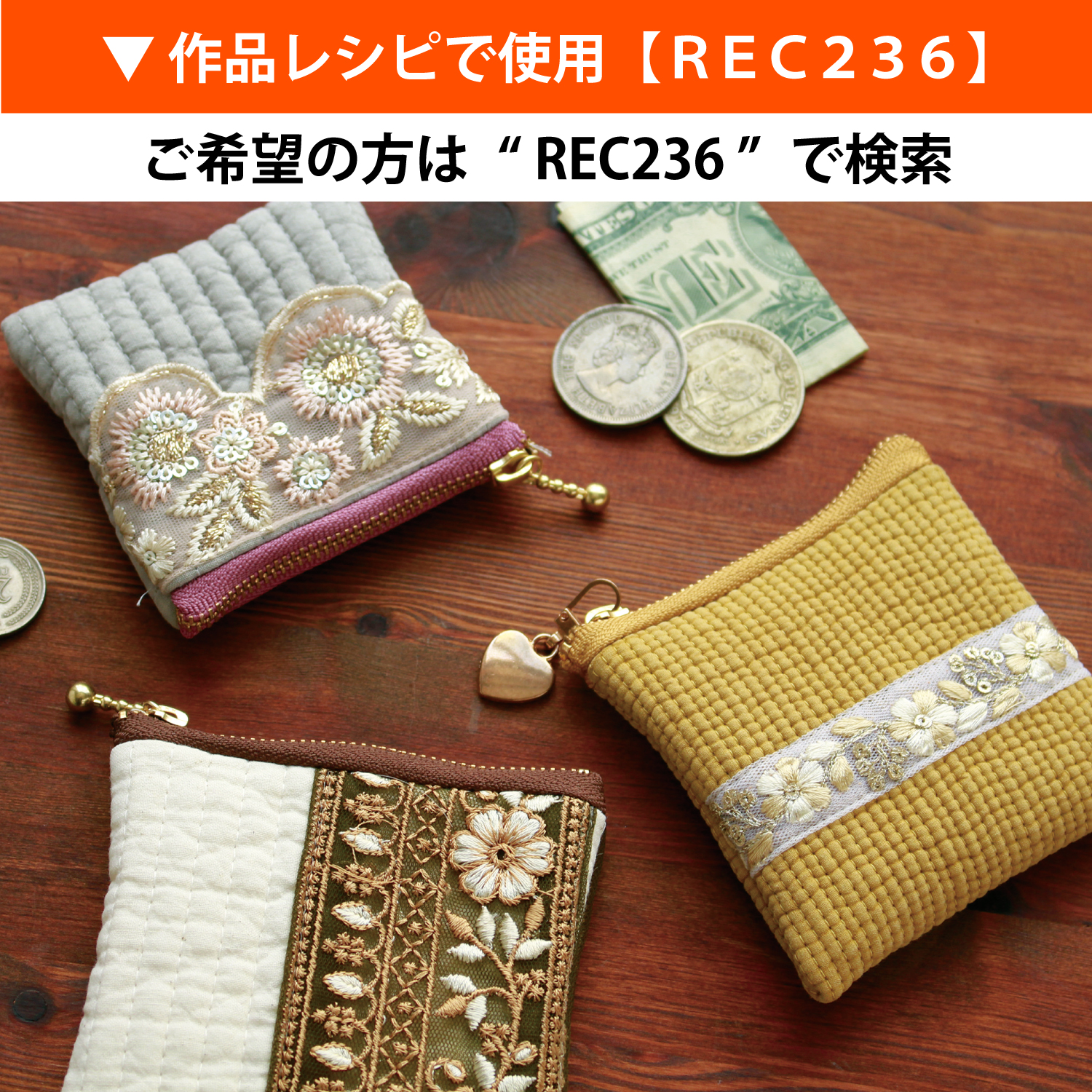 ミニポーチ、小銭入れからバッグ、洋裁のポケットなど幅広く利用できます。