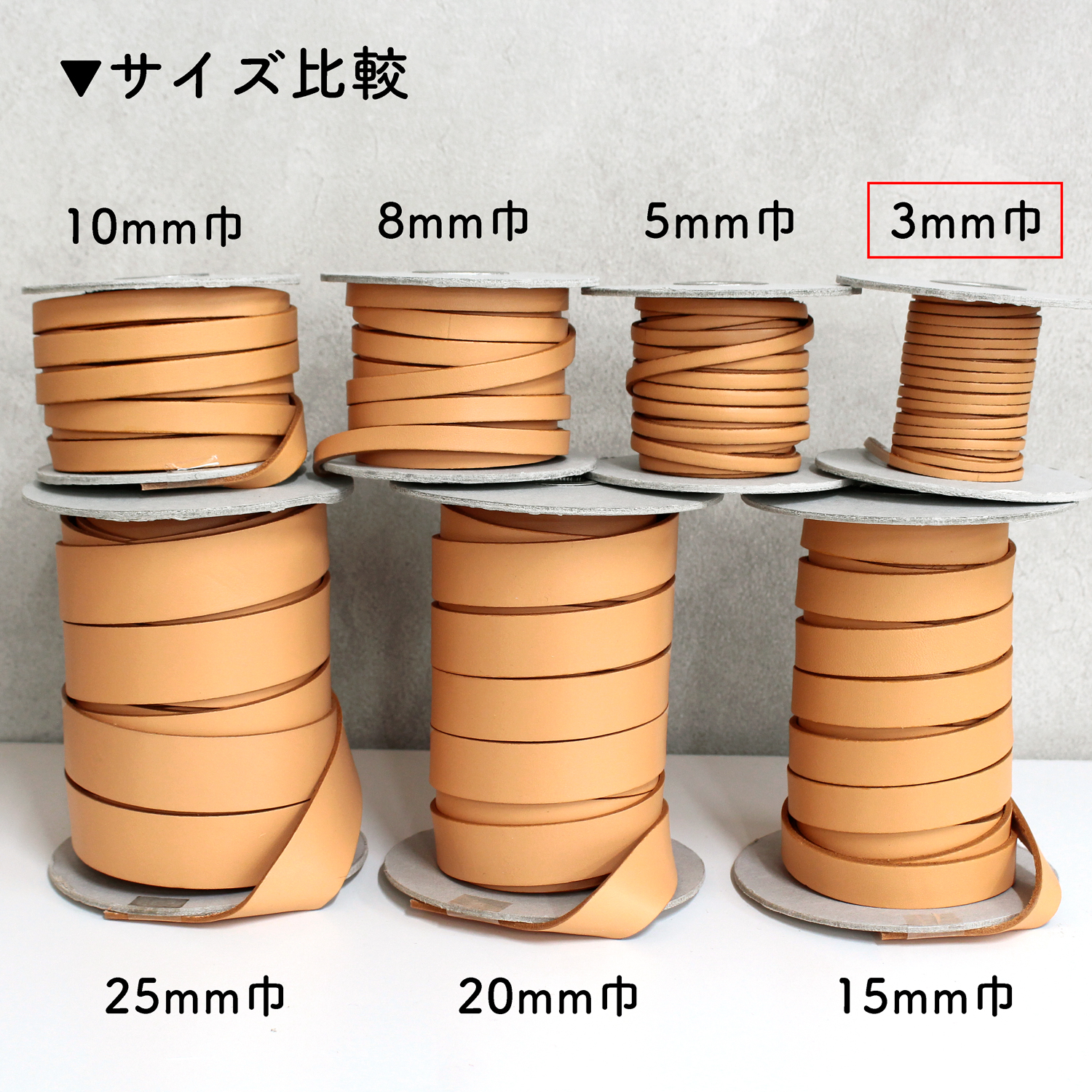 MTLS1003-OVER3 革テープ 巾約3mm×10m巻 色取り合わせ3巻以上 (巻)